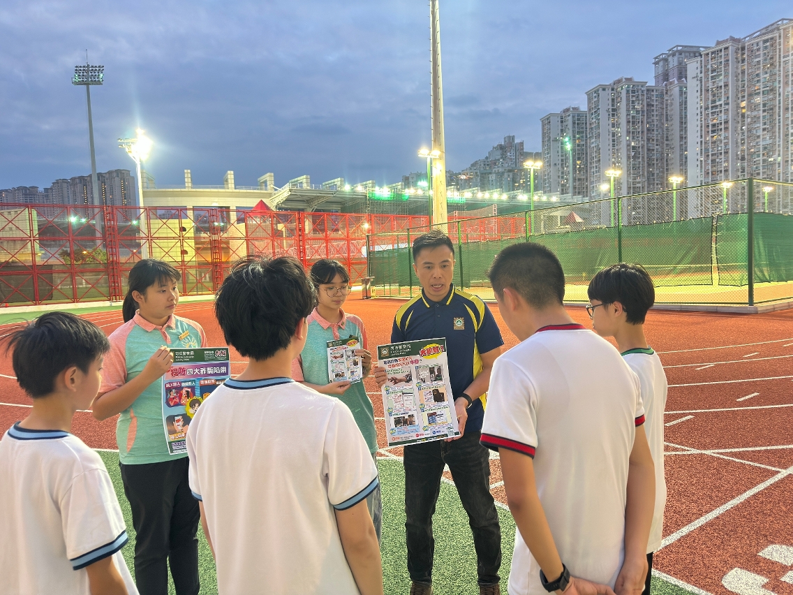 11月10日至21日期间,司警局关注少年科人员联同“社区安全青年领袖计划”及“灭罪小先锋种子计划”学员,于放学后前往体育局辖下十多处运动场所,包括体育馆、运动场、游泳馆、体育综合体及其周边区域展开防罪宣教活动。期间,司警局人员主动与青少年交流,了解他们对常见犯罪手法的认知,并讲解青少年常见犯罪类型及防范措施,进一步强化其防罪意识与应变能力。同时,司警局亦提供防罪宣传海报电子檔,供相关场所于显示屏循环播放,以助降低市民受骗风险。是次活动反应良好,共接触超过900名青少年,司警局人员亦鼓励他们将所学防罪资讯分享给家人、朋友及同学,扩大宣导效果。