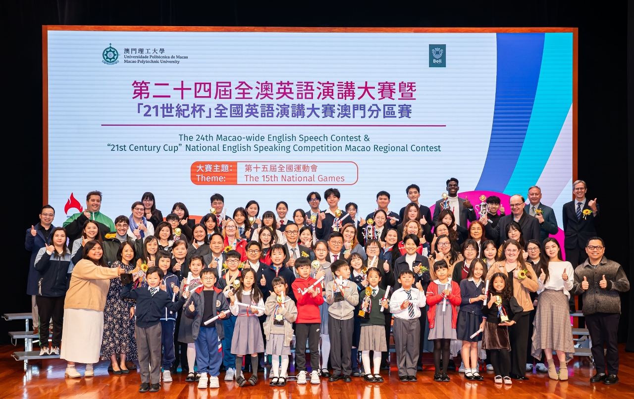 由澳门理工大学主办,理大-贝尔英语中心承办,以“第十五届全国运动会”为主题的第二十四届全澳英语演讲大赛暨“21世纪杯”全国英语演讲大赛澳门分区赛顺利举行。大赛旨在为本地学生提供展示英语能力的平台,推动澳门英语教育发展,培育拥有国际视野及多语言沟通能力的新一代人才。大赛颁奖典礼获澳门多所学校校长、代表、师生及家长等三百多人出席,共同见证参赛者在英语演讲上的卓越表现与丰硕成果,气氛热烈。