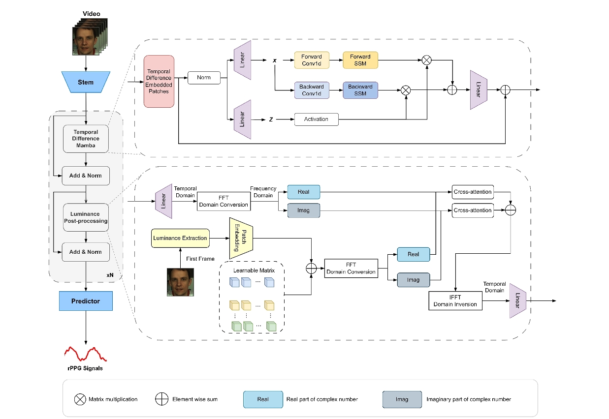 研究基于 rPPG(远程光电容积脉搏波测量)技术,透过普通摄像装置捕捉人体皮肤表面微弱的光反射变化,无需穿戴式设备即可实现心率、呼吸等生理参数的远程监测。研究团队针对包括在非理想环境光源、多重遮挡与年龄差异等因素下的准确性与稳定性等挑战提出创新解决方案,推动 rPPG 技术向临床与应用迈进。