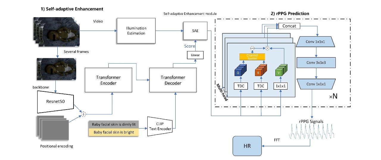 研究成果分别以“HRMamba: Fusing Luminance Information for Remote Physiological Measurement in Varied Lighting Conditions”(HRMamba:融合亮度信息的多光照环境下远程生理信号测量方法)及“BRPDNet: A BioRegion Prompt Distillation Network for Physiological Monitoring”(BRPDNet:用于生理监测的生物区域提示蒸馏网络)为题,发表于国际权威期刊《IEEE Journal of Biomedical and Health Informatics》;及以“Self-Adaptive Illumination Enhancement for Neonatal Remote Physiological Measurement in NICUs”(新生儿重症监护病房中基于自适应光照增强的远程生理信号测量方法)为题,发表于国际权威期刊《IEEE Transactions on Consumer Electronics》。
