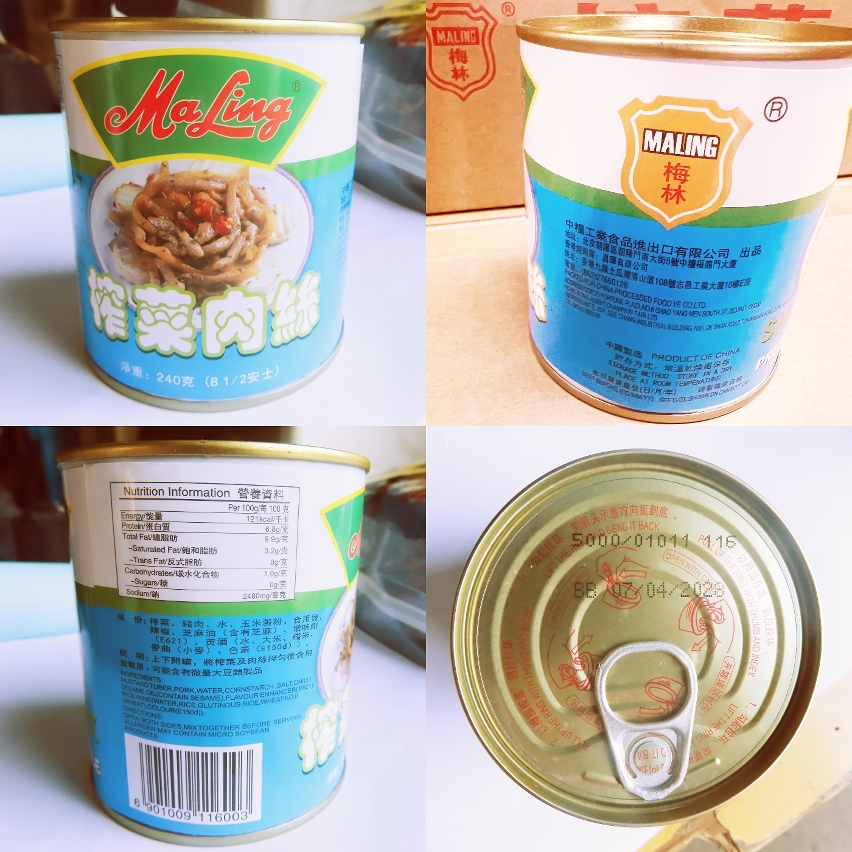 涉事产品名称为“梅林牌”榨菜肉丝,此日期前最佳为2028年4月7日,加工厂编号为5000/01011,产地为中国,净重240克。该样本被检出磺胺二甲嘧啶含量为每公斤二百零四微克,超出本澳《食品中兽药最高残留限量》的规定。