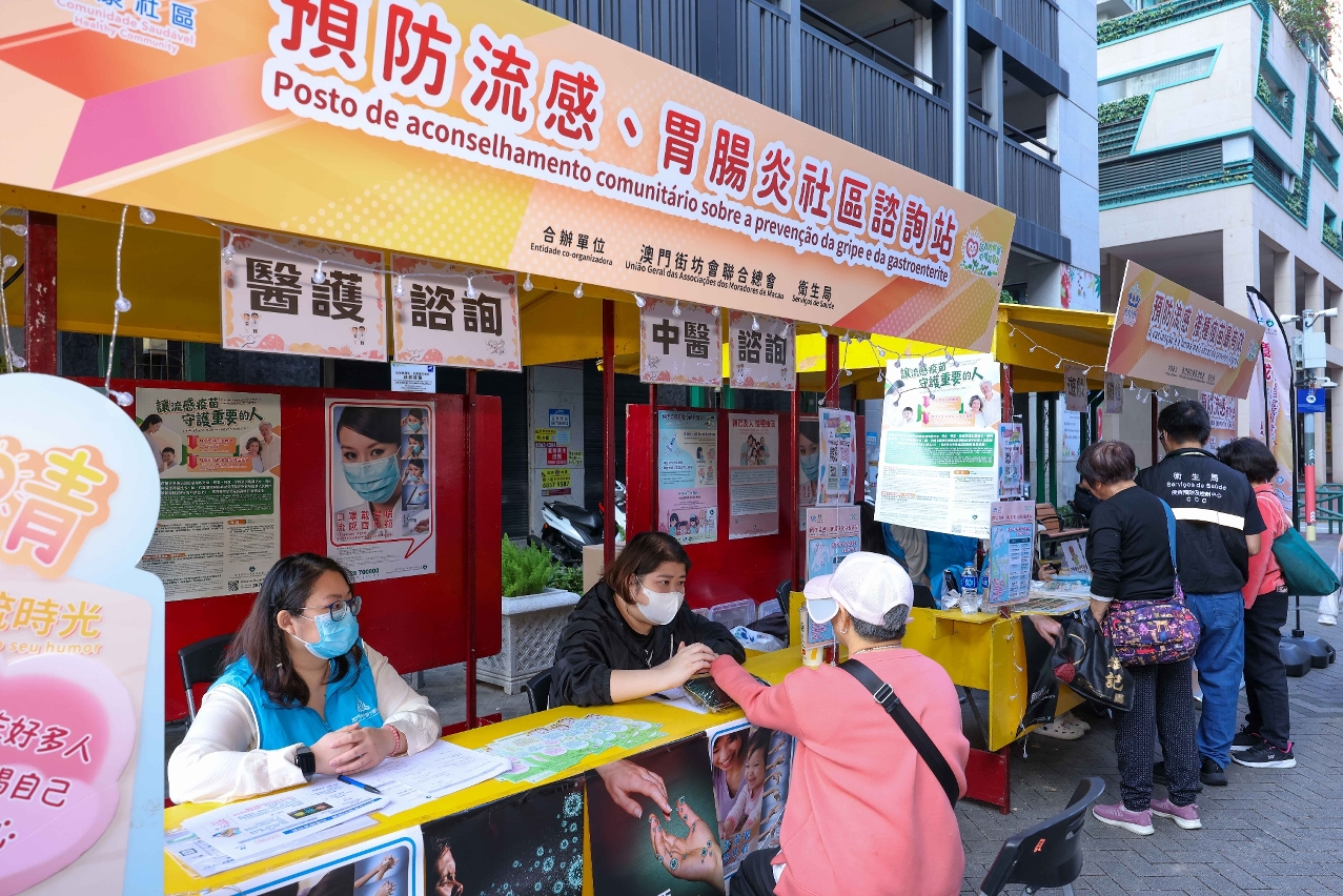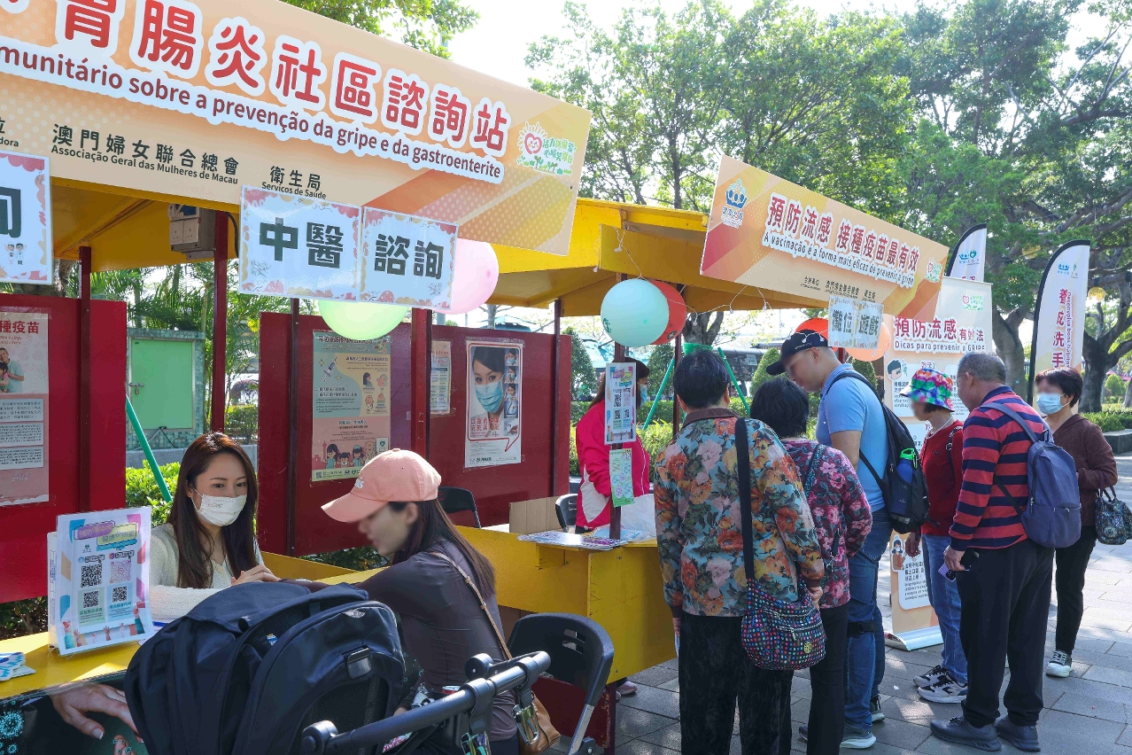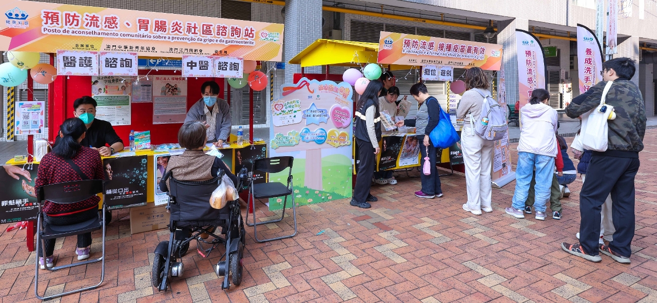 为落实《健康澳门蓝图》所订定的总体目标和指标,贯彻“关口前移”、“资源下沉”、“观念转变”三大政策方向,卫生局广泛联动多个社团及医护团体力量,发挥协同效应,于12月6及7日举办了“预防流感、胃肠炎社区咨询站”主题活动,积极开展社区传染病防控宣教,深化居民对预防传染病及心理健康的认知。两日活动共吸引超过12,000人次参与,累计提供健康咨询逾1,787人次,并成功为300位居民接种流感疫苗,反应热烈。