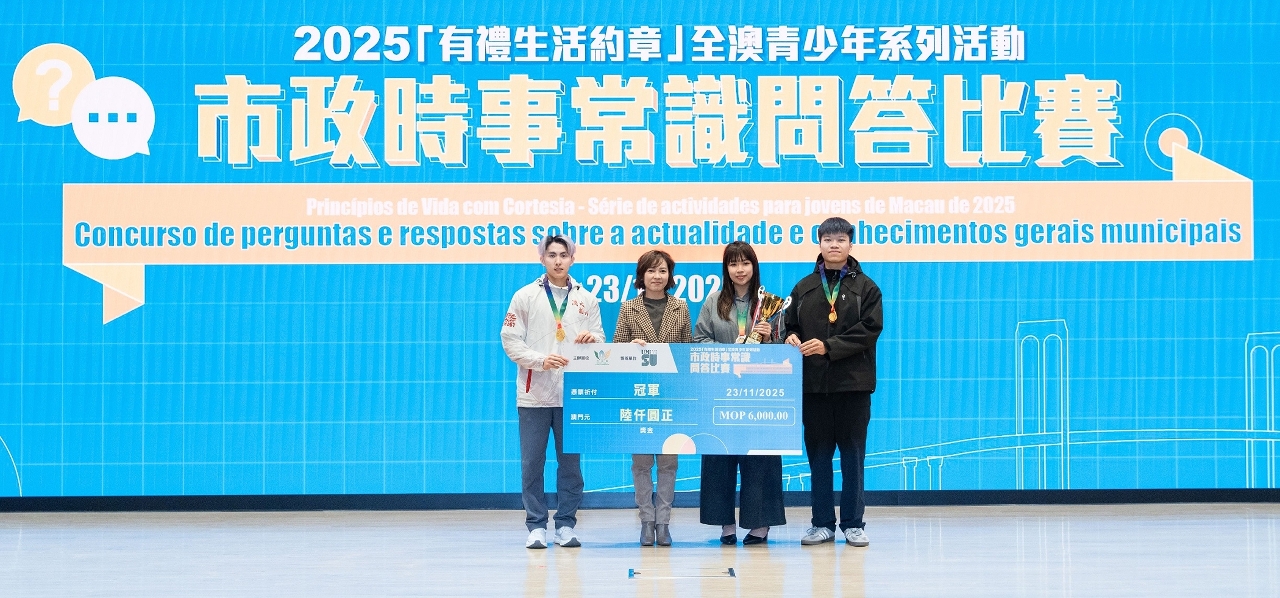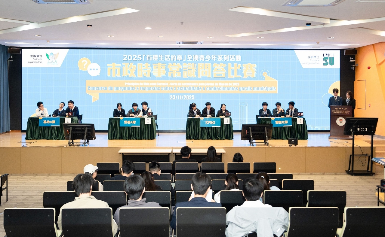 由市政署主办、澳门大学学生会协办的全澳青少年系列活动---市政时事常识问答比赛,内容涵盖了市政署职能、时事新闻、青年事务及横琴资讯等,让参赛学生围绕公民教育、城市清洁、动物保护、园林绿化、食品安全等题目阐述己见,比赛共吸引了逾百人参与及观看赛事。