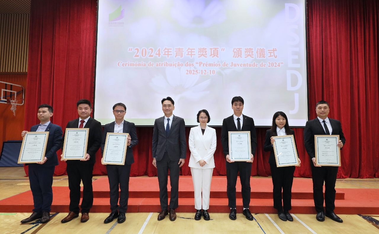 会前举行了“2024年青年奖项”颁奖仪式,共颁发“青年活动奖”及“公民教育奖”两个奖项。“青年活动奖”由鲍思高青年服务网络、澳门青年志愿者协会及澳门学人发展协会获得,“公民教育奖”由澳门青年志愿者协会、澳门中华新青年协会及澳门黑沙环青年义务工作者协会获得。