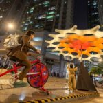 美国跨学科艺术与设计工作室Pneuhaus在飞喇士街休憩区带来由发光树状雕塑组成的艺术灯光装置“Canopy”。参与者可通过脚踏车发电机为灯光装置供电,随着能量的注入,顶部灯光气膜将绽放,呈现一片葡式花砖组成的森林。
