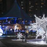 南湾区“星光・航路”于南湾湖水上活动中心的灯光装置《雪绒星》,由北京清华大学建筑学院长聘副教授黄蔚欣创作,以“编织式空间网壳”等技术创造轻盈、透光且具表现力的公共艺术装置。葡萄牙艺术家Emanuel Barbosa同样在该区域打造灯光装置《光之方舟》:一艘由光构成的方舟,投影代表不同文化的独特词语,开启一场在光影中交织的诗意旅程。