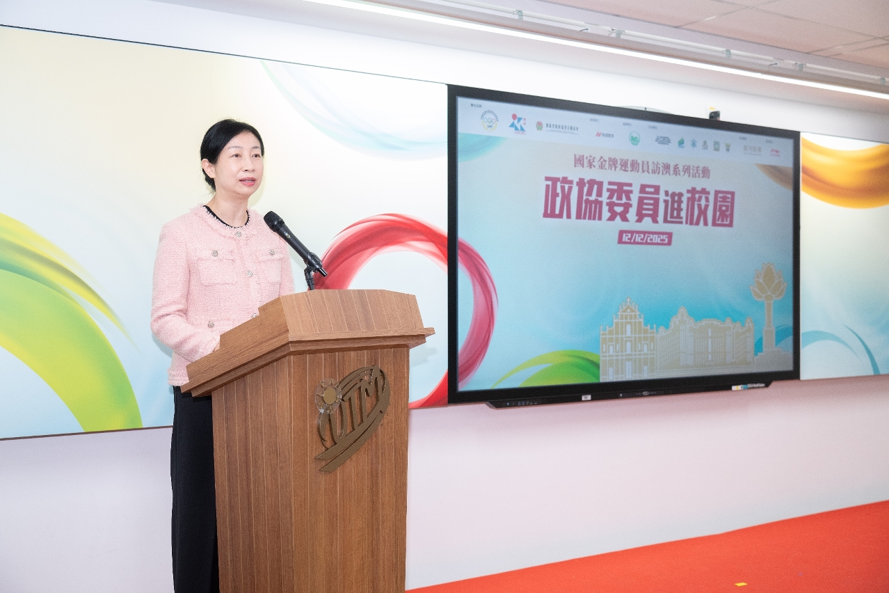 澳门旅游大学校长黄竹君致辞时表示,“政协委员进校园”系列活动是澳区省级政协委员联谊会普及国情教育的一个品牌项目,师生通过与政协委员的交流,加深了解国家政策和现今发展,深切感受到政协的爱国爱澳精神和社会担当。她亦指出,大学积极支持国家体育事业,近年不仅派出近400名师生参与第十五届全国运动会志愿服务,更有学生许家诚在全运会空手道项目中勇夺铜牌,展现澳旅大人奋发向上的精神风貌。