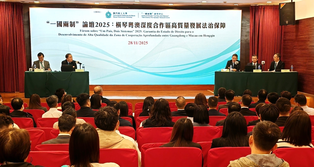 为更好发挥法治在横琴粤澳深度合作区高质量发展中的引领和推动作用,加快建成澳琴经济高度协同、规则深度衔接的制度体系,澳门理工大学“一国两制”研究中心举办“一国两制”论坛,以“横琴粤澳深度合作区高质量发展法治保障”为主题,对标合作区第二阶段发展目标,探讨合作区高水平法治建设相关问题。