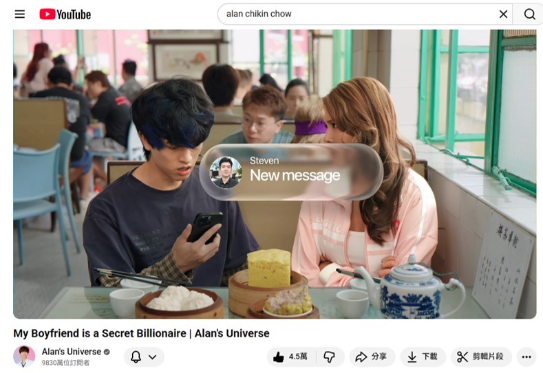 旅游局与YouTube头部创作者Alan Chikin Chow联手推出创意短剧(短剧截图)