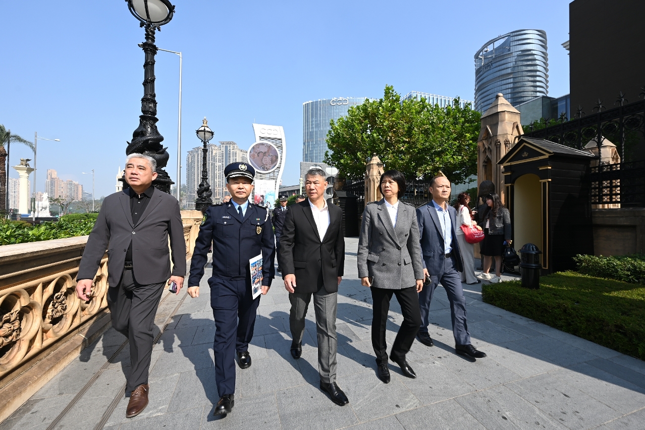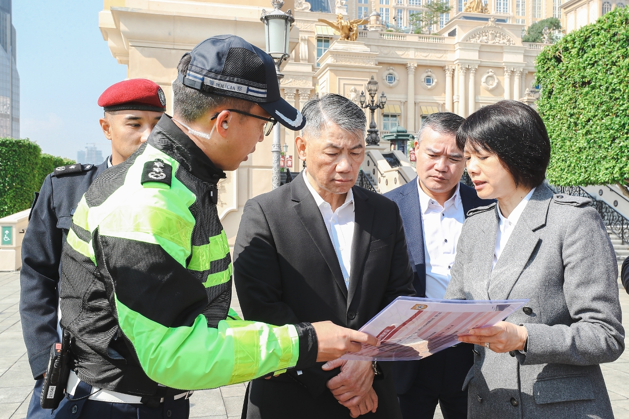 随着访澳旅客突破历史新高,加上多项除夕大型倒数活动即将举办,警方预计将吸引大量市民和旅客参与庆祝。为确保各项活动安全有序进行,警察总局局长梁文昌今日(29 日)上午率治安警察局代局长伍素萍、警察总局局长助理梁文照、局长助理魏瑞斌、治安警察局副局长梁庆康、代副局长郑俊禧等领导主管,先后实地视察大三巴、旅游塔、官也街、金光大道等主要活动场地及人流密集区域,检视节日安保工作的落实情况。
