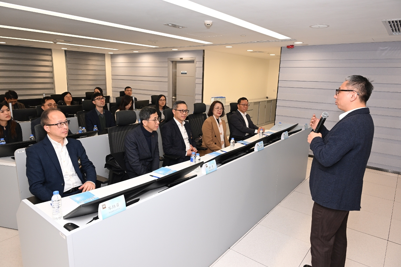 其后,代表团转往司警局总部大楼,参观反诈骗协调中心、网络安全事故预警及应急中心,听取司警局在预防电讯网络诈骗、网络安全风险预警及应急处置等方面的工作介绍,并了解相关技术配置与整体布局。