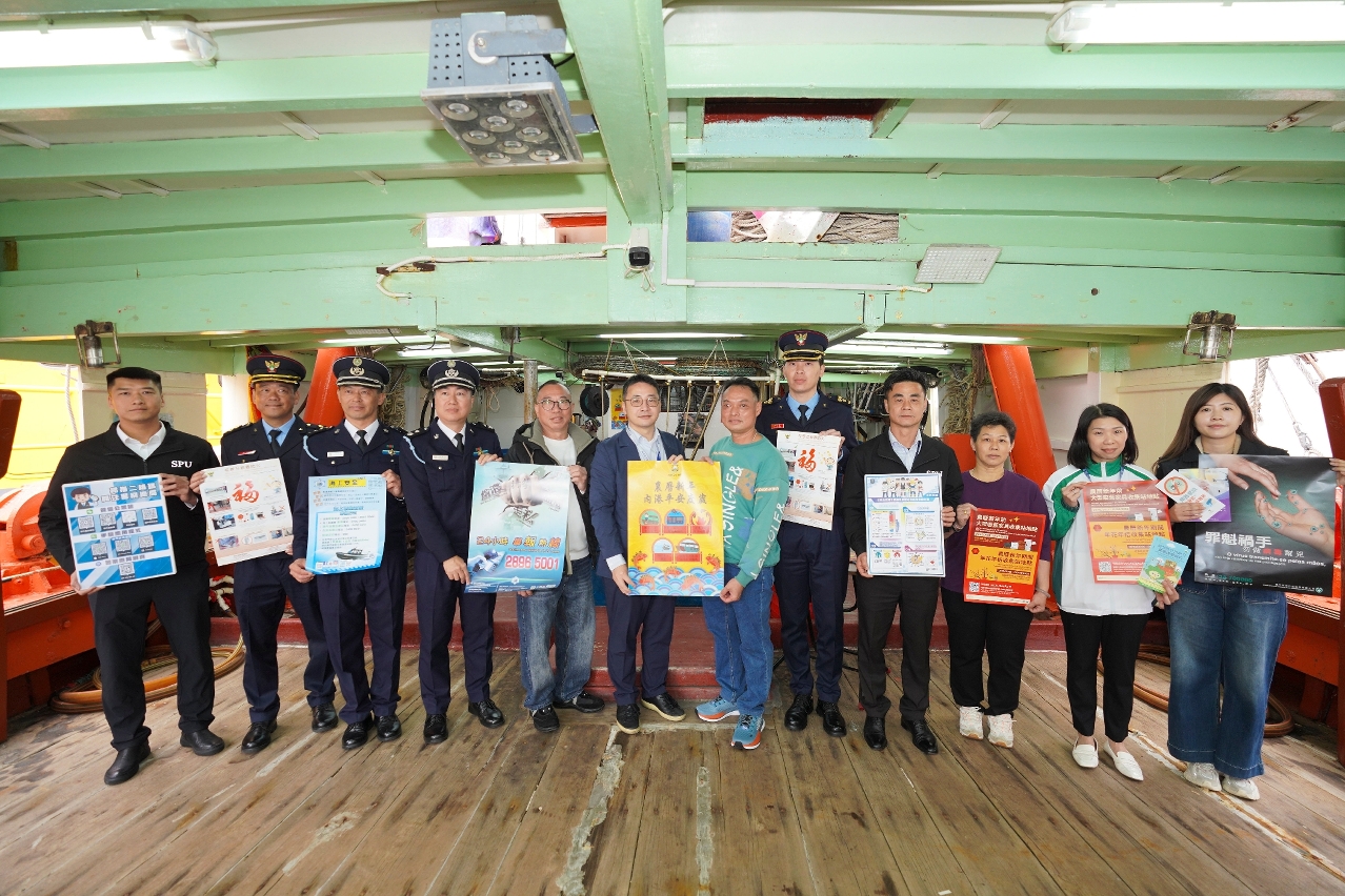 今(9)日,海事及水务局联同警察总局、海关、消防局、市政署、卫生局以及渔民团体代表,登船拜访渔民,宣传海上防火、防盗、防污及防疫等安全知识。