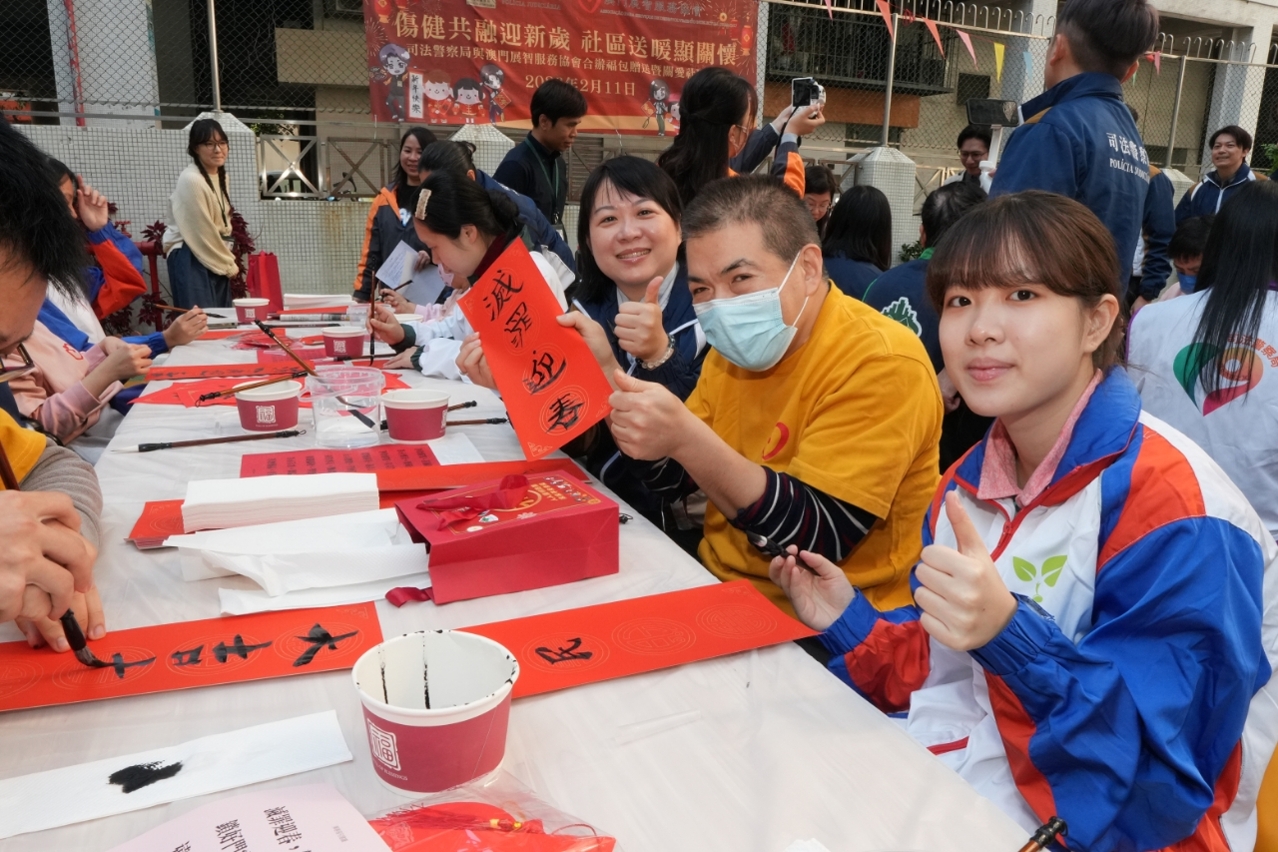 2月11日上午,探访队首先抵达启康中心,向学员及职员致以节日祝福并展开互动。期间,探访队结合学员认知特点,用通俗易懂的语言讲解常见的犯罪手法和基本防罪知识,帮助他们提升自我保护意识,并提醒他们在节日期间加强警惕,妥善保管个人财物;同时紧扣新春主题,与学员共同书写防罪主题的贺年挥春和制作福包,将防罪信息融入传统节庆活动中。探访队与学员在动手实践中增进了彼此的情感联结,学员更充分展现出专注与创意,在亲身体验中真切感受到自身价值,明白自己也能为社区传递防罪守法意识,现场始终欢声笑语,洋溢着欢乐和谐、关爱共融的浓厚氛围。