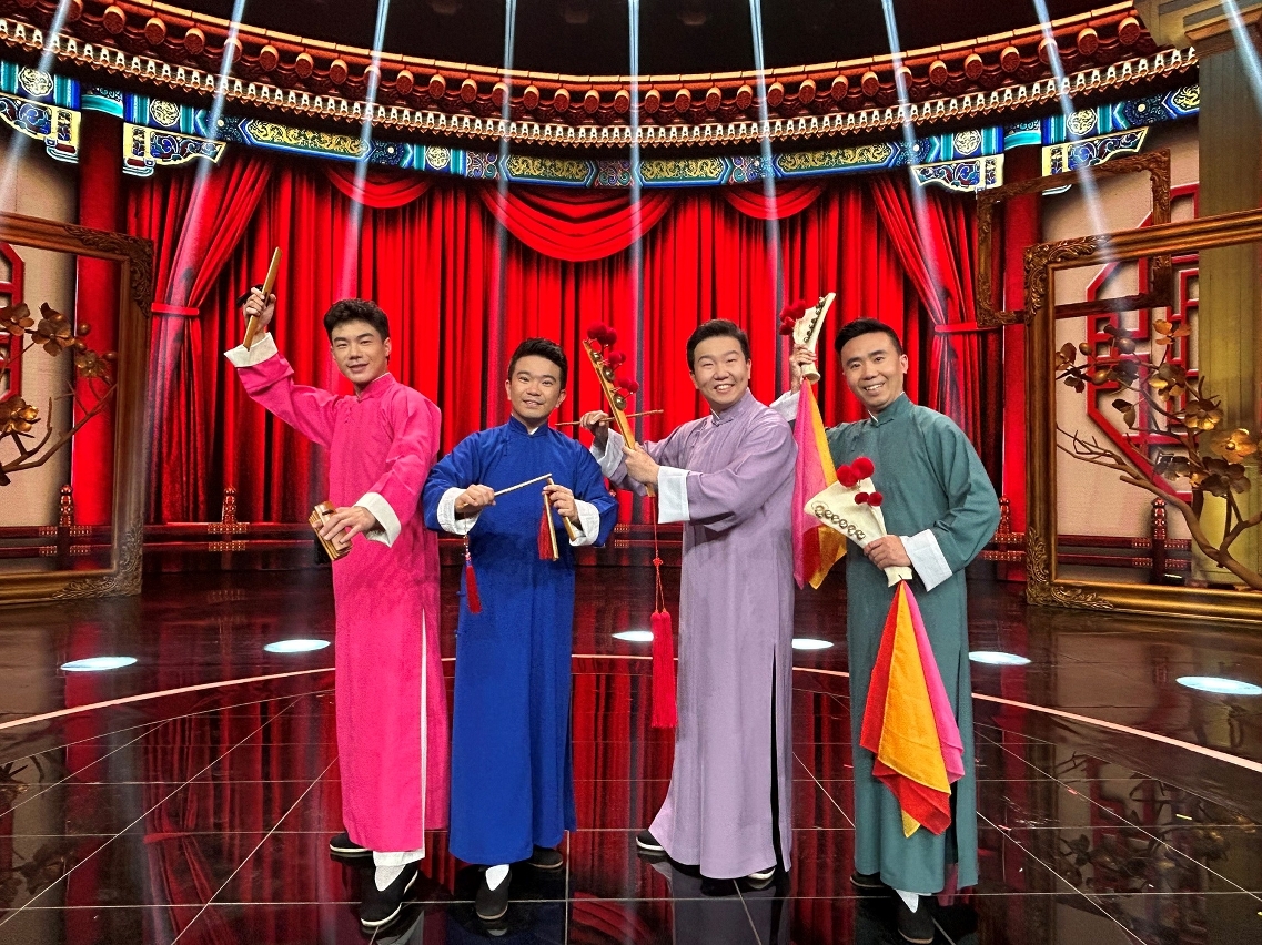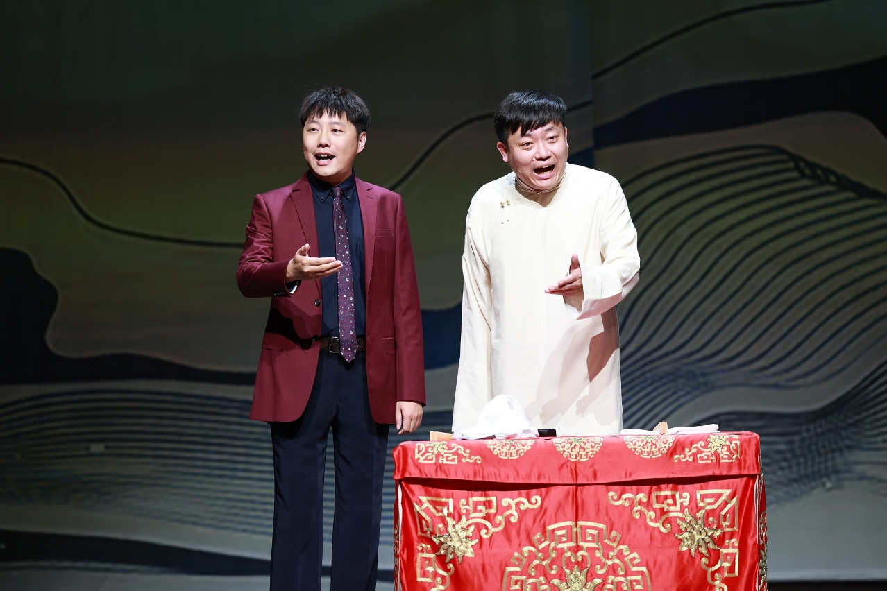 相声,是以说、学、逗、唱为表现形式,用笑话、说唱、滑稽的问答等引起观众发笑的喜剧性曲艺艺术;快板,也叫称“顺口溜”,属于中国曲艺韵诵类曲种,由宋代的“莲花落”演变发展而成;双簧,是形成于清代具喜剧效果的中国传统曲艺,由“前脸”通过肢体动作与口型类比说唱内容,与隐藏于椅后进行说唱的“后声”配合完成;空竹,又称做“扯铃”,为具有悠久历史的国家级非物质文化遗产,三国时期曹植《空竹赋》是最早对空竹的记录,距今已有1,700多年历史;变脸,川剧的特技之一,常用于揭示剧中人物的内心及思想感情变化的古老表演技巧,并以其高超的表现力和感染力,成为一门单独表演的艺术形式;古彩戏法,这项国家级非物质文化遗产项目起源于南宋时期杭州的瓦舍及街头表演,具有“四面管瞧,八面管看”独特表演形态。
