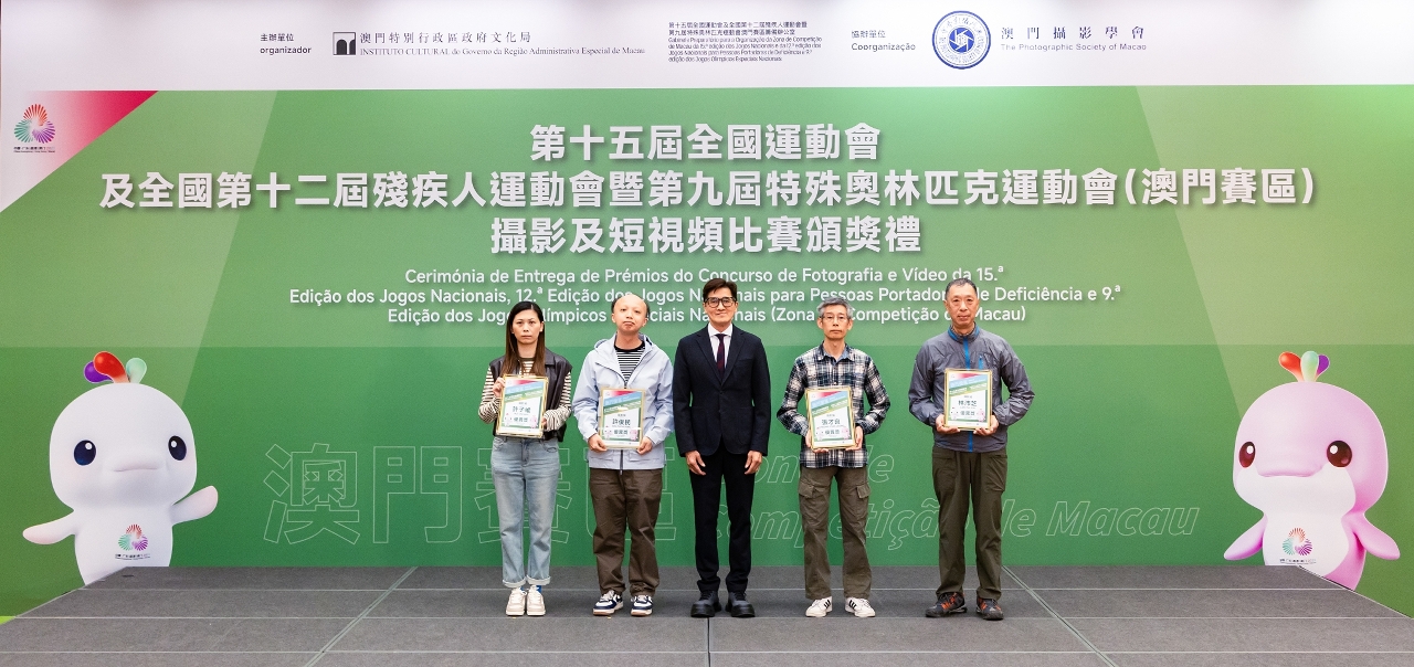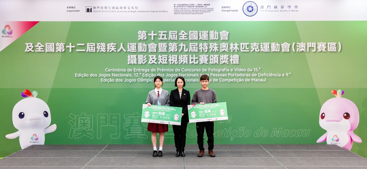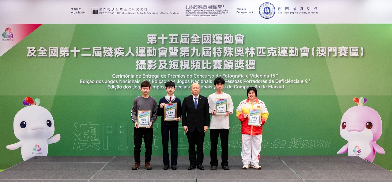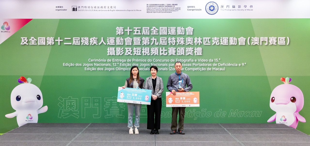 由文化局与第十五届全国运动会及全国第十二届残疾人运动会暨第九届特殊奥林匹克运动会澳门赛区筹备办公室联合主办、澳门摄影学会协办的第十五届全国运动会及全国第十二届残疾人运动会暨第九届特殊奥林匹克运动会(澳门赛区)摄影及短视频比赛,今日(3月14日)在澳门文化中心举行颁奖礼,表扬一众优秀创作者藉镜头捕捉及记录运动员的矫健英姿、赛事的精彩瞬间,以及观众热情参与的欢乐时刻。