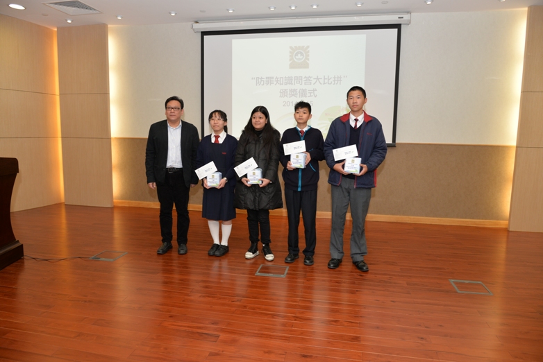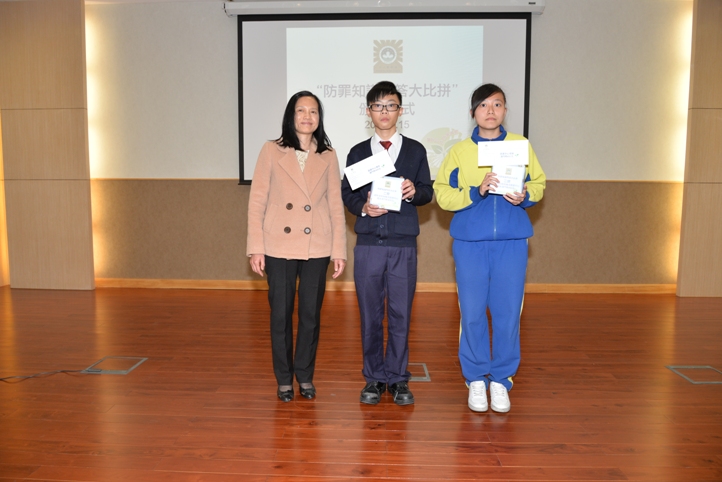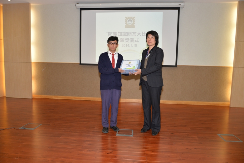 为了深化警校合作关系,在校园宣扬防罪灭罪讯息,加强青少年预防犯罪和自我保护的意识,以及鼓励他们尽公民责任,勇於举报犯罪,司法警察局举办"防罪知识问答大比拼活动",对象为於本澳就读的中学生。各校学生反应踊跃,共有16,912人参加,答对全部问题的共有3,220人。日前,司警局进行抽奬仪式,从答案全对者中抽出获奖者,名额为头奖一名、二奖兩名、三奖四名及四奖一百名,并於1月15日下午5时在司警局举行颁奖礼。 颁奖仪式由司警局张玉英副局长主持,并由教育暨青年局德育中心黄艳兰主任、中华教育会学术部副部长邓骏捷副教授及司警局关注少年组职务主管赵朱惠敏担任颁奖嘉宾,多所学校代表应邀出席。 张玉英副局长於颁奖礼上致词表示,藉着此次活动,冀能让青少年学生加深认识社会,提升防罪知识,并将学习到的防罪知识向同辈传播,与罪恶划清界线,成为守法和勇於举报罪案的良好公民。 "防罪知识问答大比拼"活动以完成选择题的形式进行,题目内容包含抢劫、纵火、诈骗、盗窃、毁损、电脑及毒品犯罪等多种常见的犯罪类型、犯罪行为和相关的法律知识。学生透过参与活动,可增进其法律知识及认清哪些行为会触犯法律,以及了解到不法份子的犯罪手法,从而提高警惕,远离犯罪。 有关得奖名单已上载於司法警察局网页www.pj.gov.mo,以供查阅。如欲查询,请致电8800 5500联络关注少年组人员。