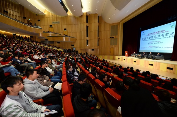 是次论坛全场一千座位并无虚席,观众除大学和中学的师生外,还有澳门社会各界代表、澳门笔会等社团代表以及合办单位的澳门青年庆祝特区成立十五周年活动委员会代表。论坛结束后,莫言出席了澳大伍宜孙图书馆二楼空中花园举行的书展。该书展陈列了莫言多本经典着作,吸引一众师生和学者驻足参观。
