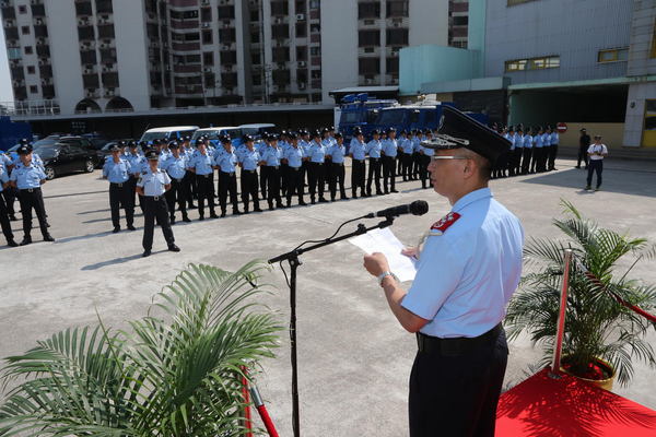 2013年10月29日 02:21今天(10月28日)上午十二时,在治安警察局特警队大楼内举行了131名警员的就职典礼。仪式由治安警察局局长李小平警务总监、副局长黎锦权副警务总监及副局长梅山明副…