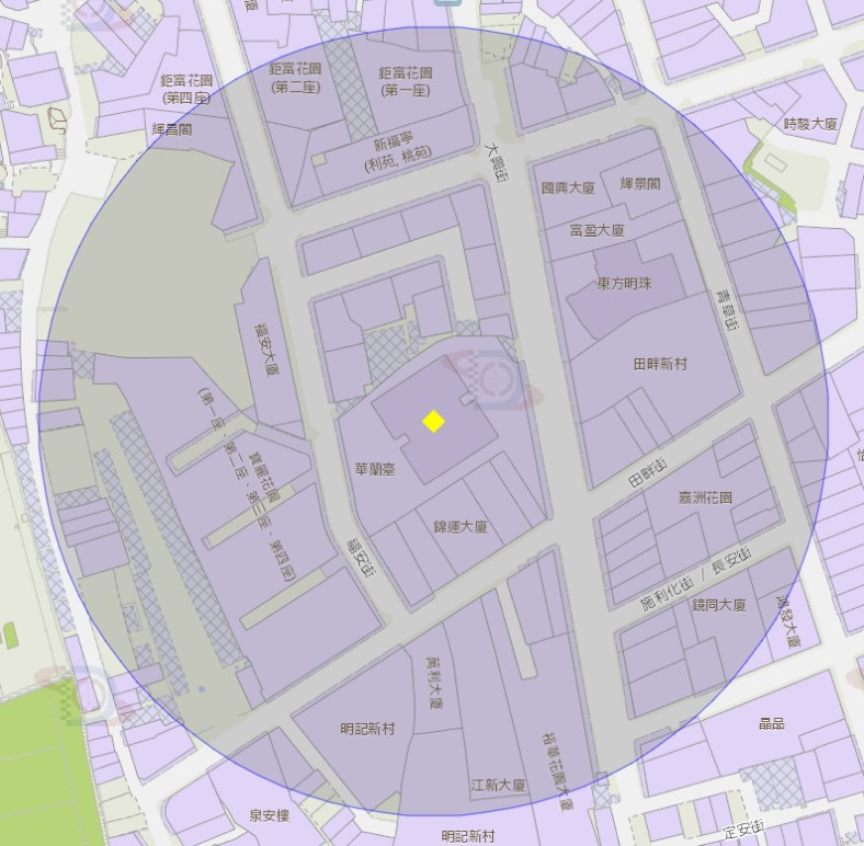 福安街28号华兰台第二座附近风险区域100米半径范围