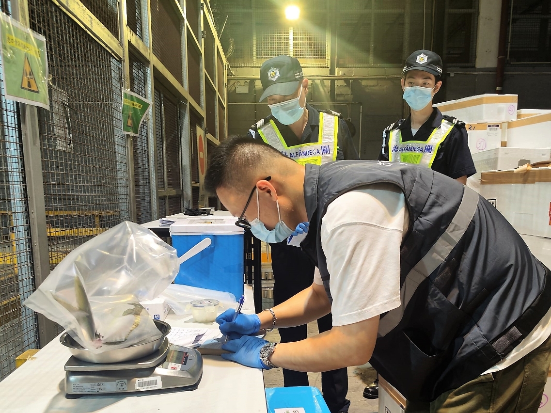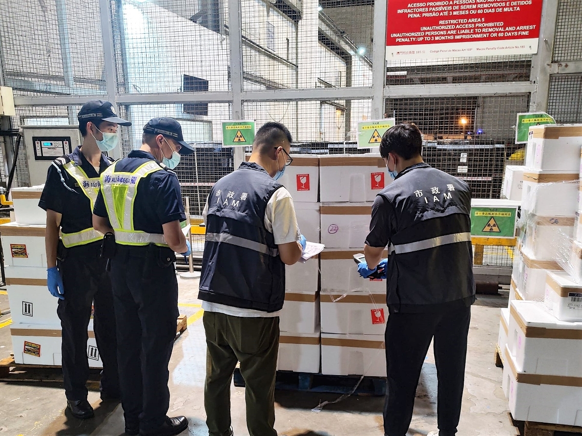 市政署聯同澳門海關今晚(8月24日)於機場貨運站展開聯合行動,對來自日本的進口食品貨物進行全面輻射水平檢測 。