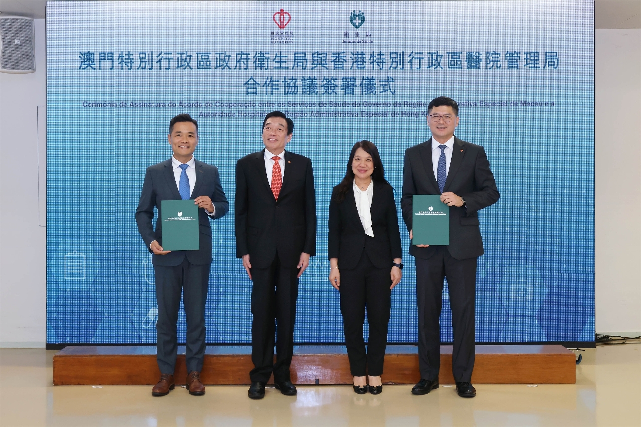 香港特別行政區醫院管理局主席范鴻齡則強調,醫管局積極配合香港特別行政區政府的醫療衛生政策,深化與粵港澳大灣區內不同城市在醫療衛生健康領域相關機構的合作,推動公立醫院的發展,以更好地融入國家發展大局,希望未來與澳門特別行政區政府衛生局在過去的良好合作基礎上,保持緊密合作以進一步提升港澳兩地公立醫院服務專業水平,協同發展,合作共贏,並通過續簽合作協議,與澳門特別行政區政府衛生局就醫療衛生領域持續緊密合作,互學互鑒,提升區內醫療服務水平,應對人口老化挑戰,為居民健康福祉作更大貢獻。