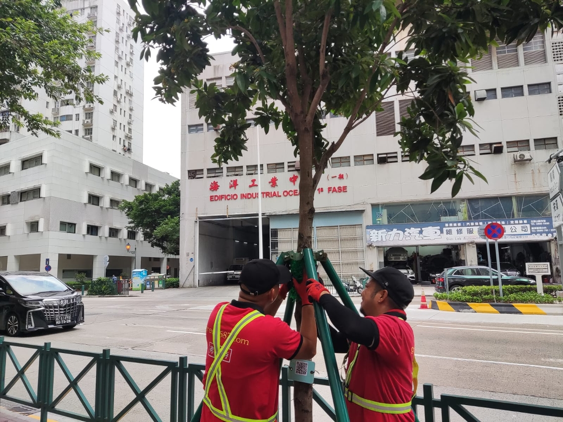 市政署已有序安排疏剪樹木濃密的樹冠,除去病枝、枯枝和結構撕裂的樹枝,以減輕樹冠重量及受風面積,降低樹木在暴風雨時倒塌的機會。此外,亦會檢查樹木支撐架及鋪設保護格柵覆蓋泥土。