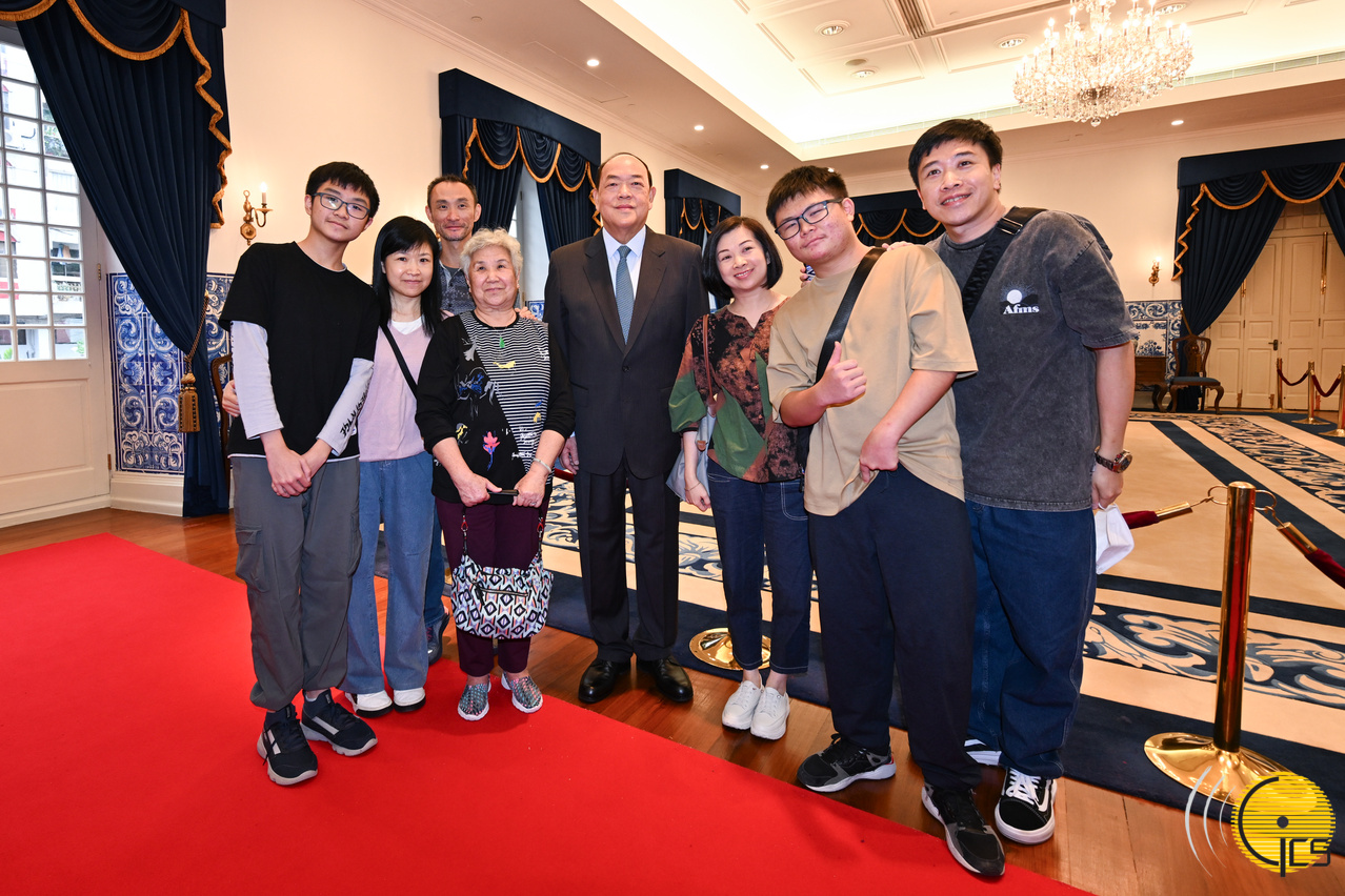 行政長官賀一誠與到訪的家庭合影,同享開放日的歡樂氣氛。