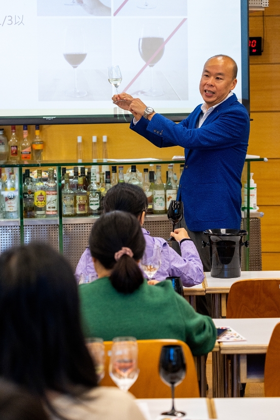 澳門旅遊學院連續兩年獲文化局邀請成為“相約澳門——中葡文化藝術節”的支持單位,於11月12及19日在澳門旅遊學院望廈校區成功舉辦四場葡萄酒品味工作坊。工作坊由澳旅院葡萄酒課程講師何文正主持,帶同多名澳旅院葡萄酒品嘗學會的學生以專業侍酒技巧,引領近80位參加者品嚐不同風格的葡萄牙葡萄酒,並講解葡萄牙主要葡萄酒產區及葡萄品種。現場更搭配多款由澳旅院教學餐廳提供的葡式特色小食,在認識葡萄酒文化的同時,體驗美酒與食物之美妙搭配。