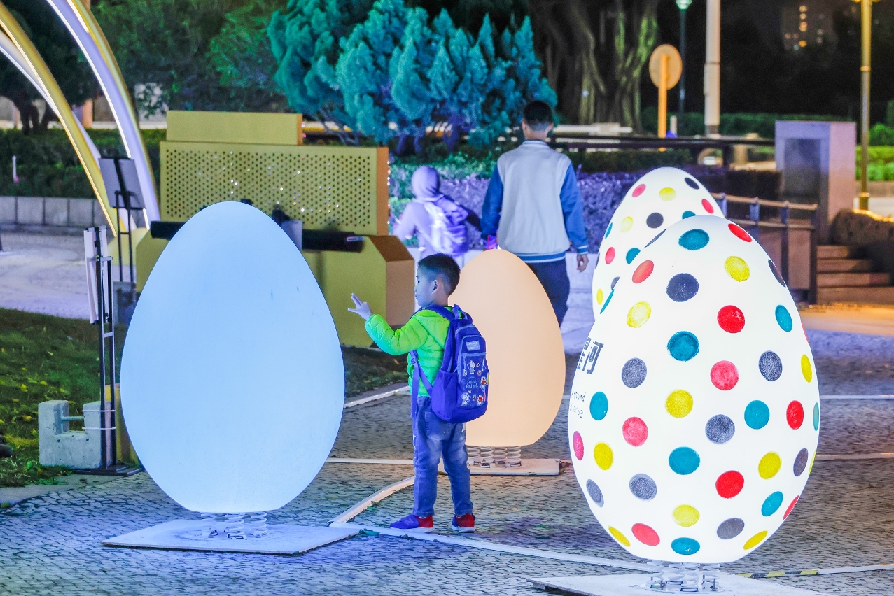 新口岸填海區 - 宋玉生廣場的“發光不倒翁”:不倒翁蘊含著關於力和平衡的科學道理,有趣味及科普性,激發孩子的奇思妙想。