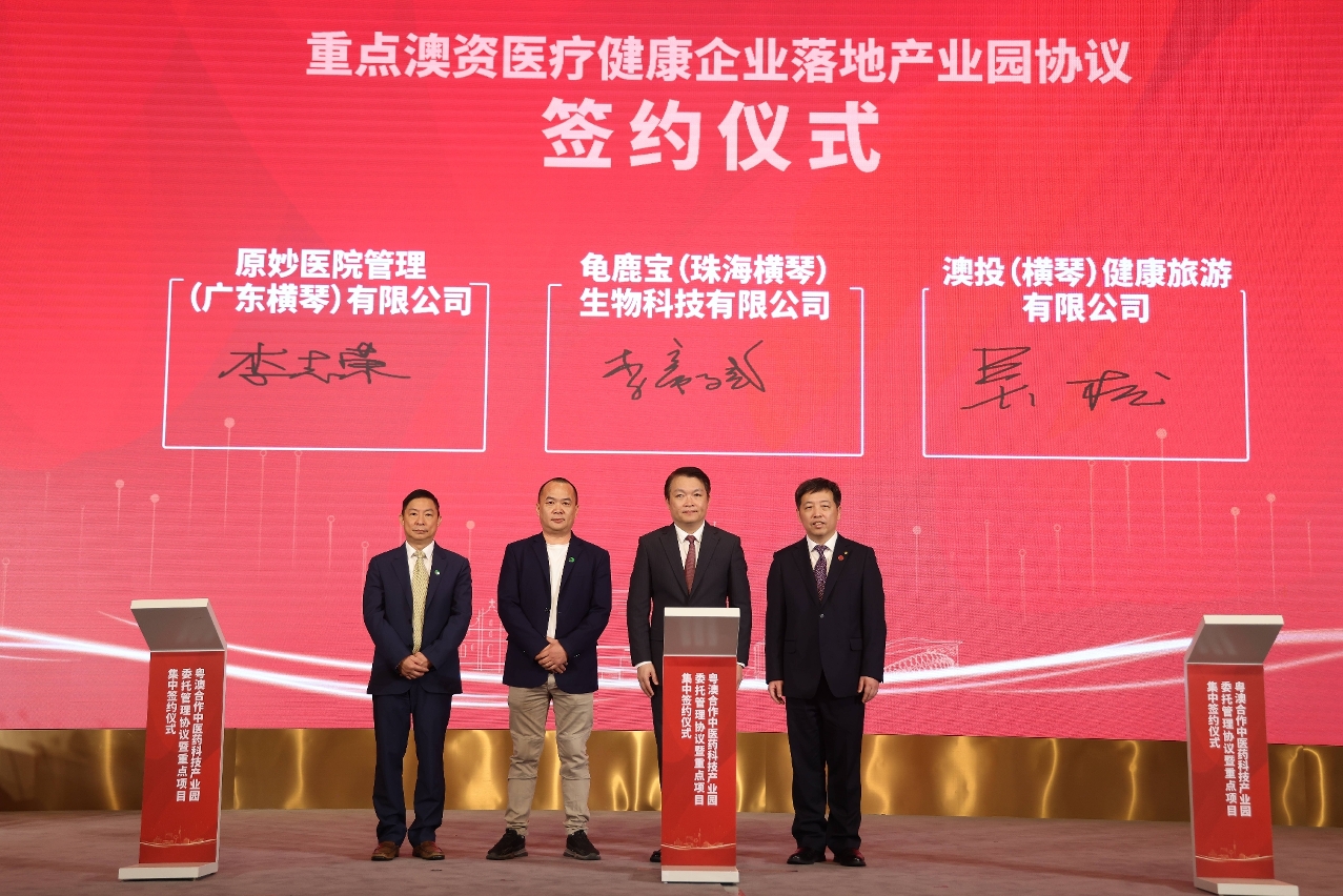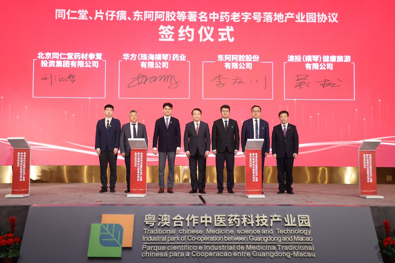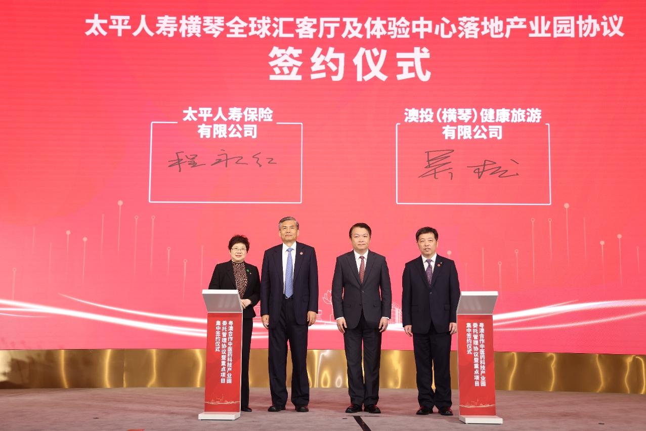 在澳門特別行政區行政長官、橫琴粵澳深度合作區管理委員會主任賀一誠,中央人民政府駐澳門特別行政區聯絡辦公室主任鄭新聰,中國太平保險集團董事長王思東,澳門特別行政區經濟財政司司長、橫琴粵澳深度合作區執行委員會主任李偉農和中國太平保險集團副總經理李可東見證下,由澳門投資發展股份有限公司主席吳建峰與太平資本保險資產管理有限公司總經理吳松代表雙方簽署《粵澳合作中醫藥科技產業園委托管理協議》,正式建立委托管理關係,共同推進產業園提升服務品質,加快產業聚集。國家中醫藥管理局局長余艶紅,副局長兼中國中醫科學院院長黃璐琦,廣東省政府橫琴辦主任、橫琴粵澳深度合作區執行委員會副主任聶新平,中國銀行業務管理總監趙蓉,中國工程院院士、中醫證候全國重點實驗室主任劉良教授等出席簽約儀式。