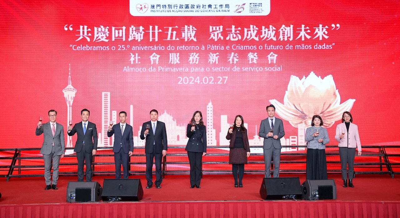 社會工作局今(27)日舉行“共慶回歸廿五載 眾志成城創未來”社會服務新春餐會,由社會文化司歐陽瑜司長、中央人民政府駐澳門特別行政區聯絡辦公室副秘書長兼社會工作部黃華蓋部長、社會文化司司長辦公室何鈺珊主任、社會工作局韓衛局長、教育及青年發展局龔志明局長、衛生局羅奕龍局長、文化局張麗珊代局長主持啟動儀式,共600多名社會服務機構代表及社會各界人士聚首一堂,共慶新春。