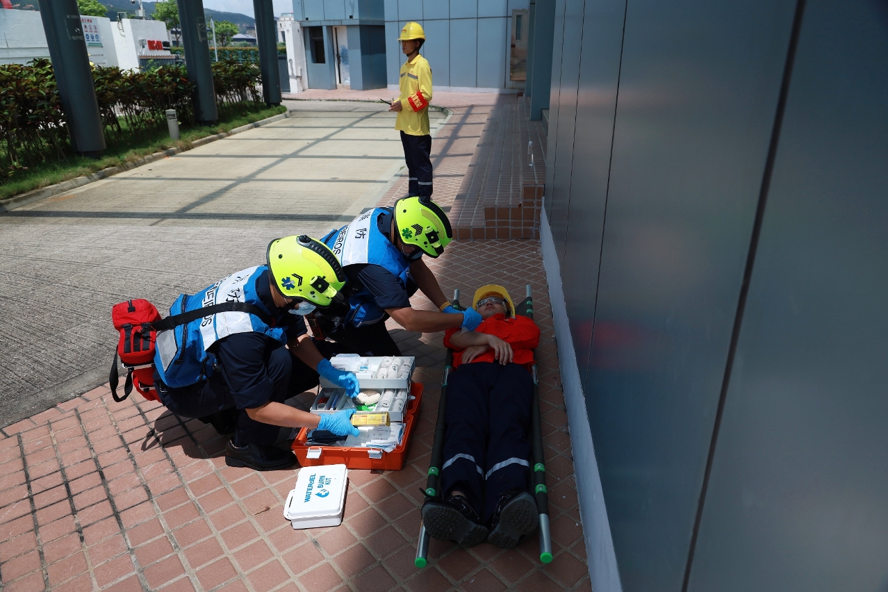 消防局接報後,立即派遣6架緊急救援車輛及24名隊員趕赴現場,按照既定的救援預案進行滅火、以及開展疏散搜救行動,並對該名傷者進行初步護理後模擬送院治理。