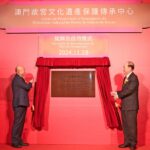 為慶祝中華人民共和國成立75周年、澳門特別行政區成立25周年,強化本澳文化遺產修復保護和教育推廣,助力建設“以中華文化為主流、多元文化共存的交流合作基地”,由澳門特別行政區政府與中華人民共和國文化和旅遊部合作籌建的“澳門故宮文化遺產保護傳承中心”,於今日(11月28日)舉行揭牌儀式,由澳門特別行政區行政長官賀一誠與故宮博物院院長王旭東共同主持,中央人民政府駐澳門特別行政區聯絡辦公室主任鄭新聰、外交部駐澳門特別行政區特派員公署特派員劉顯法、澳門特別行政區政府社會文化司司長歐陽瑜、澳門特別行政區政府文化局局長梁惠敏等出席儀式。