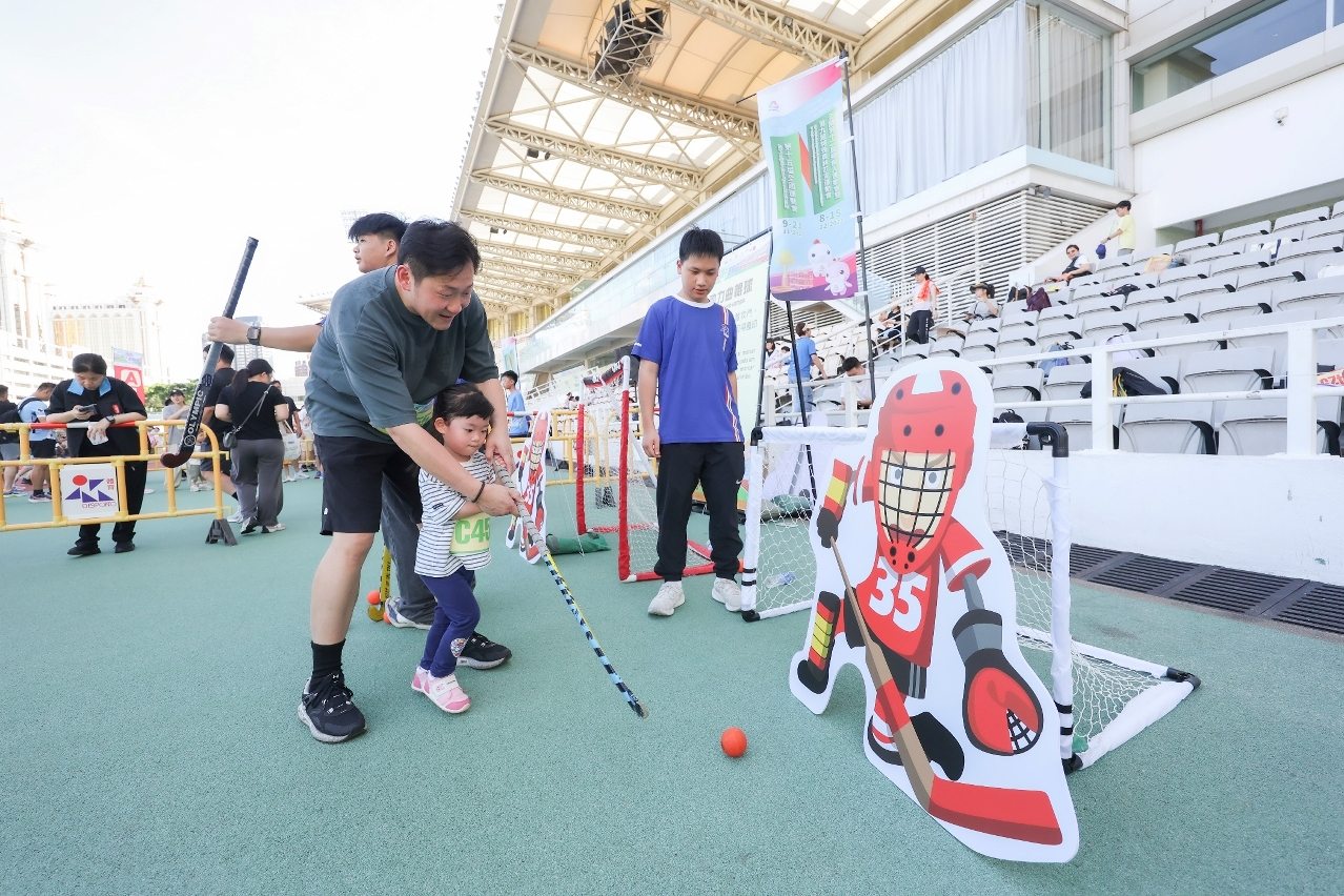為鼓勵家長多陪伴子女參與親子活動,構建良好的親子互動關係並增進親子間的感情,由體育局主辦,教育及青年發展局、澳門街坊會聯合總會、澳門工會聯合總會及澳門婦女聯合總會協辦的“2025親子運動日”於今(8)日在奧林匹克體育中心運動場及室內館圓滿舉行,吸引了來自各區的家庭及親子踴躍參與,共同渡過充滿歡樂與健康的時光。活動上,家長與子女互相合作,透過分組進行了多項的康體競技比賽,同時參與現場多個康體攤位遊戲,讓參加的家庭都享受到天倫之樂,各家長與孩子們在遊戲中歡笑連連,場面溫馨熱鬧。