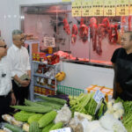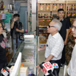 行政長官岑浩輝到沙梨頭街市市政綜合大樓視察街市的環境、設施及營運狀況。