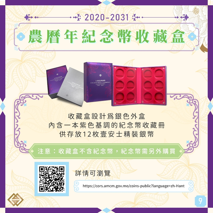 如欲購買金管局是次生肖系列已發行年份的紀念金、銀幣以及2020-2031年農曆年紀念幣收藏盒,可查閱金管局紀念幣網上服務系統(https://cors.amcm.gov.mo/coins-public?language=zh-Hant)。
