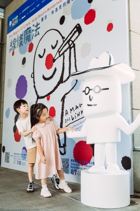 由文化局與美高梅攜手呈獻的展覽“線條魔法:塞吉•布洛克的繪本遊樂園”,分別於澳門文化中心1樓平台“•ART空間”(展期至10月7日)及媽閣塘片區“海事工房1號及2號”(展期至9月14日)分設三個展區,全面展現塞吉標誌性的幽默風格與生動線條藝術。展覽涵蓋十餘主題單元,融合藝術展示與互動遊戲,構建可玩可看可學的繪本遊樂園。