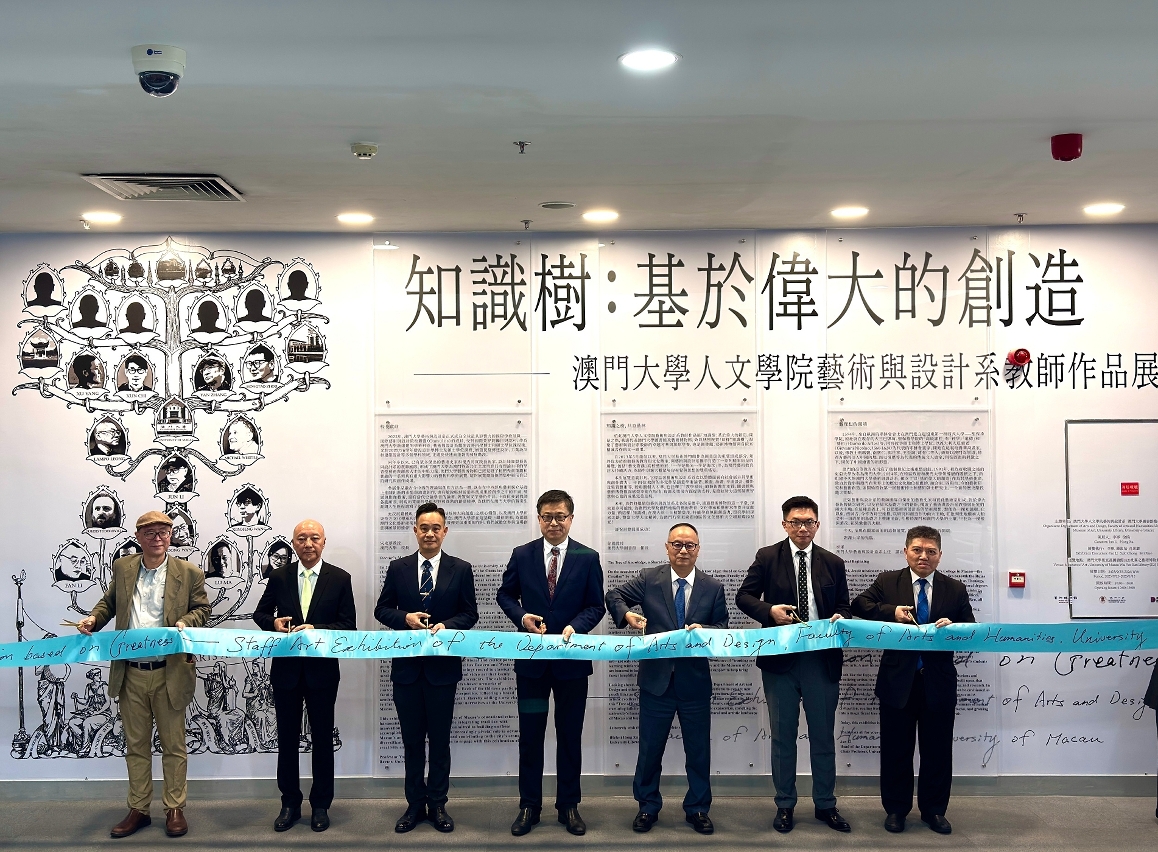 由澳門大學人文學院藝術與設計系及藝術博物館共同主辦的“‘知識樹:基於偉大的創造’——澳門大學人文學院藝術與設計系教師作品展”今(29)日在澳門大學藝術博物館揭幕,展出超過60件澳大藝術與設計系教師團隊的作品,集中呈現藝術與設計領域的多元創新與創作,涵蓋學術研究、版畫、油畫、平面設計、攝影、裝置、文字藝術作品等。