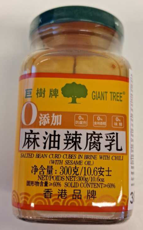 涉事麻油辣腐乳品牌為“巨樹牌”,淨含量300克 (10.6安士),此日期前最佳為2027年4月15日,批次為20250562_001,產地為中國。