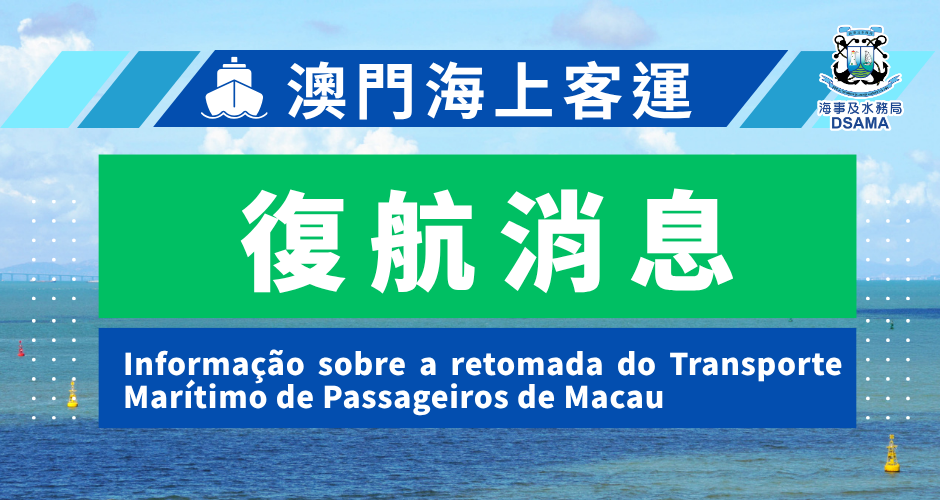 海事及水務局協調船公司做好復航安排,澳門外港開往香港上環的首班船今日13:45開出,澳門氹仔開往香港上環的首班船14:00開出。澳門內港開往珠海灣仔的首班船18:10開出。澳門往返深圳蛇口、福永、中山的海上客運航線,以及海上遊航線,船公司將視乎天氣情況安排復航。