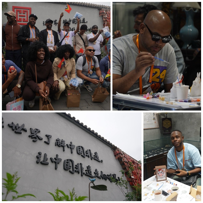 接下來,葡語文藝團體來到北京文化氣息最濃厚的93號院博物館,這裡是非遺和民間藝術傳播與體驗的基地。他們親手繪製兔兒爺、京劇臉譜,並體驗紮染手工藝,切身感受這些傳統技藝的獨特魅力和深厚意義。