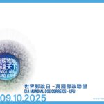 為慶祝萬國郵政聯盟訂立之世界郵政日,郵電局特於二零二五年十月九日,分別於郵政總局集郵商店及通訊博物館商店設置臨時櫃台,為市民提供加蓋“世界郵政日 – 萬國郵政聯盟”紀念郵戳服務,服務時間如下: