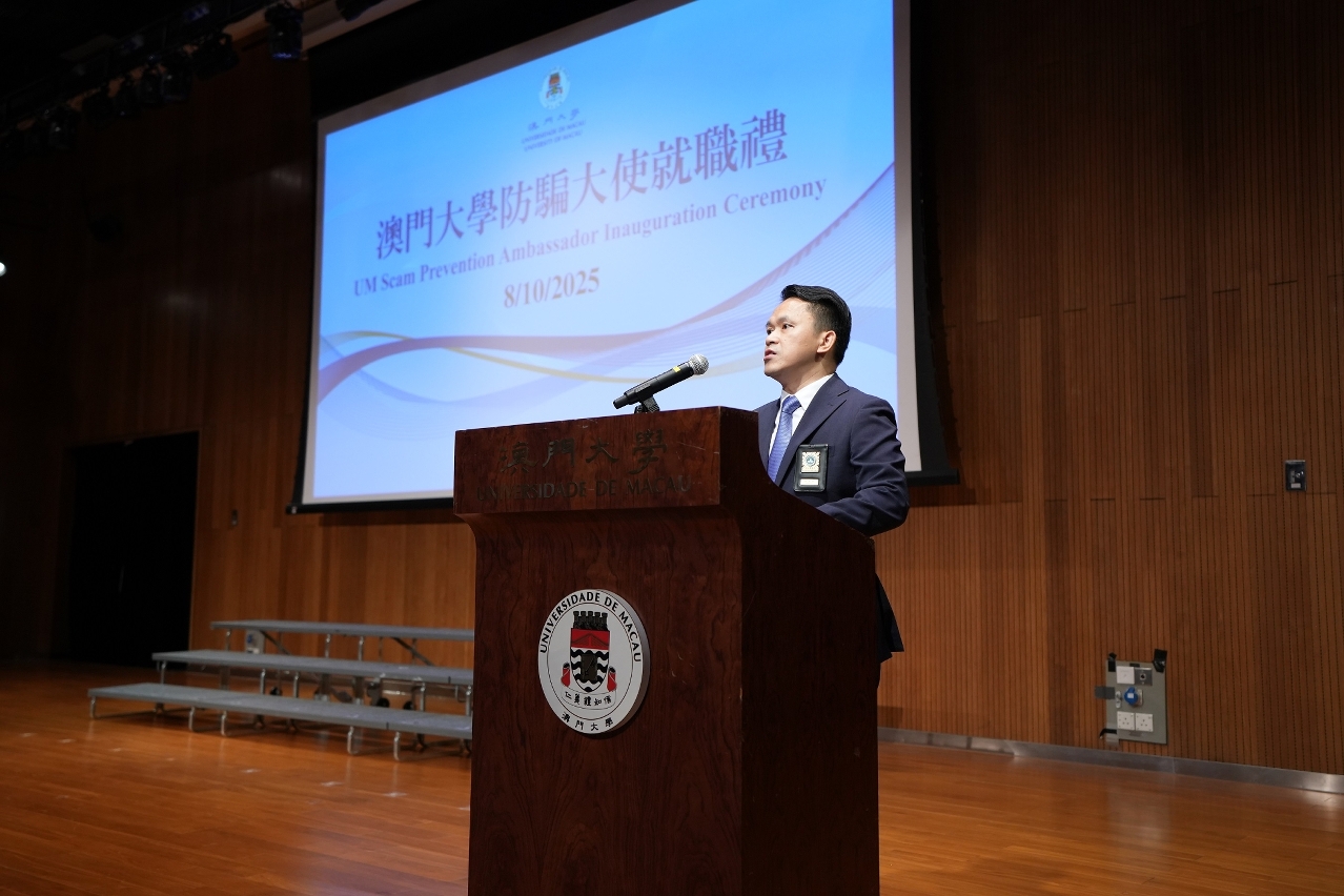 第二屆防騙大使就職儀式上,澳大副校長莫啓明與司法警察局副局長蘇兆強共同向學生防騙大使頒發委任狀。今屆防騙大使延續過去的多元組成架構,成員分別來自澳大十所住宿式書院、研究生宿舍小導師計劃、澳大學生會及司法警察局“社區安全青年領袖計劃”。