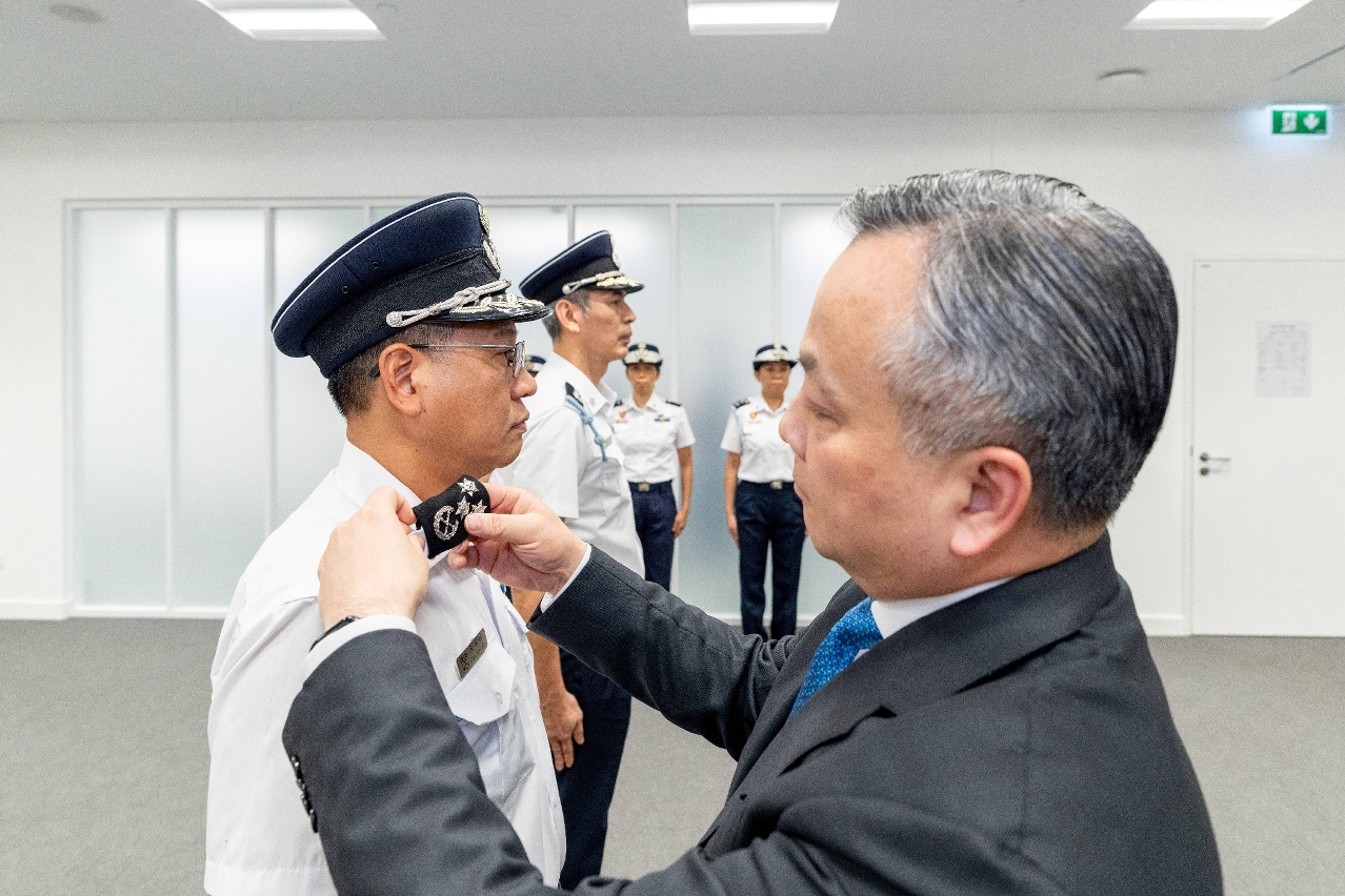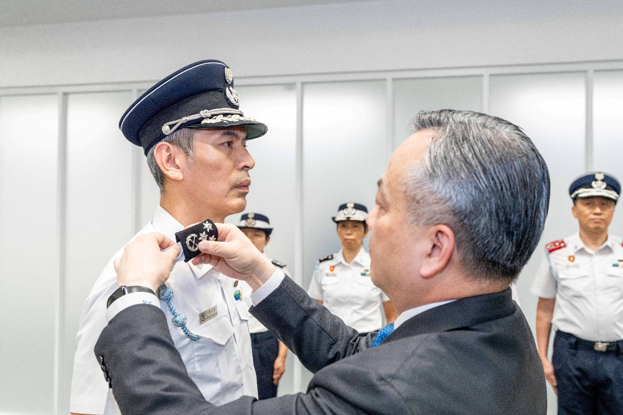 最後,何關長寄望兩名獲晉升的關務官憑藉其專業知識及工作經驗,盡職盡責,帶領團隊無畏挑戰、攻堅克難,切實做好海關範疇的工作,竭誠為市民福祉、社會安定和經濟發展貢獻力量。