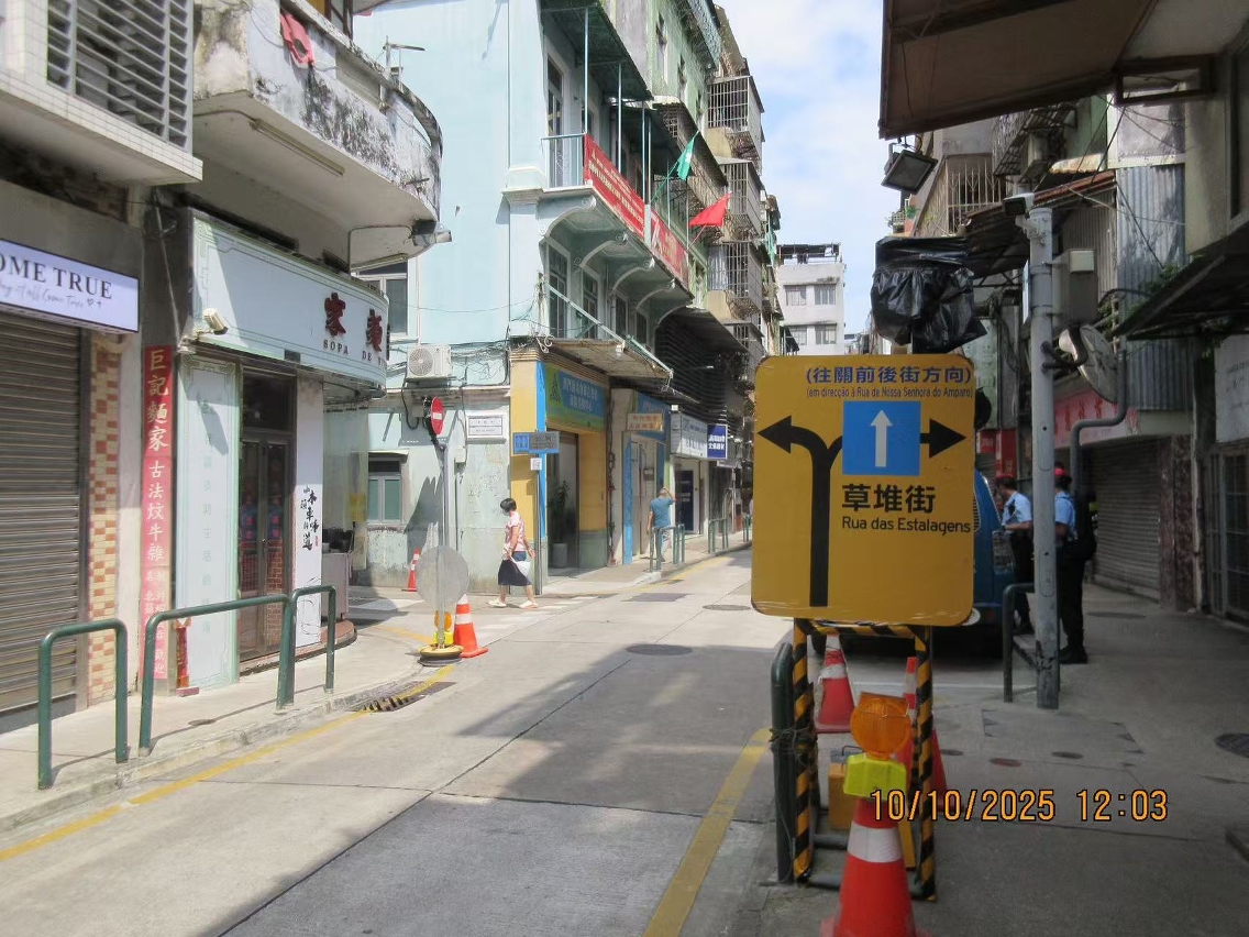 營地大街預留管線試點項目工程日前正式展開,考慮到工程涉及區內交通循環調整,工程實施初期,交通事務局聯同施工單位進行現場駐點視察,因應實際情況及社會意見,及時調整各項臨時措施的安排,包括於具條件位置擴闊行人通道、理順臨時指示牌安排、延長巴士站駐點人員時間等。