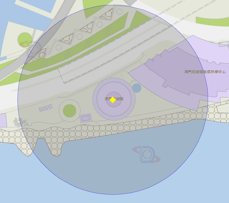 澳門科技大學附近一帶風險區域100米半徑範圍