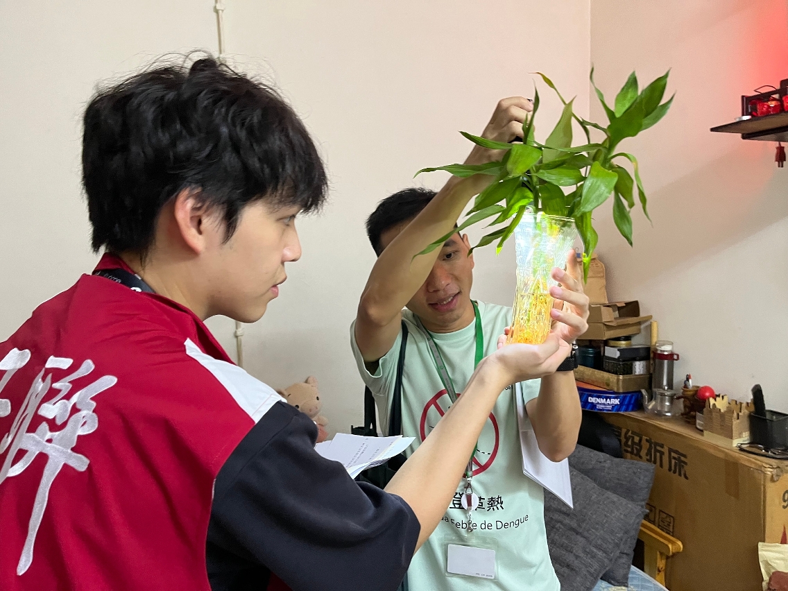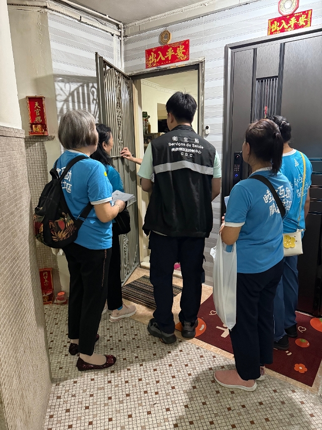 為進一步提升社區防疫效能,發揮“健康社區”計劃的協同作用,並協助居民辨識及清除常見蚊蟲孳生源,衛生局於今(13)日與澳門工會聯合總會、澳門街坊會聯合總會、澳門婦女聯合總會等社團合作,展開為期7天(10月13至19日)的“健康社區—全城家家戶戶清積水”防控雙熱社區聯合行動。每日動員約130名來自衛生局及社團的人員,分組深入社區,逐戶進行防蚊宣導及積水清理指導。首日行動重點針對關閘一帶的本地病例區域,共派出24支小隊,上門向居民講解雙熱的症狀、傳播途徑及關鍵防蚊措施,並在取得同意後,入戶協助檢查及清理積水,強化居民對孳生源的辨識與處理能力。