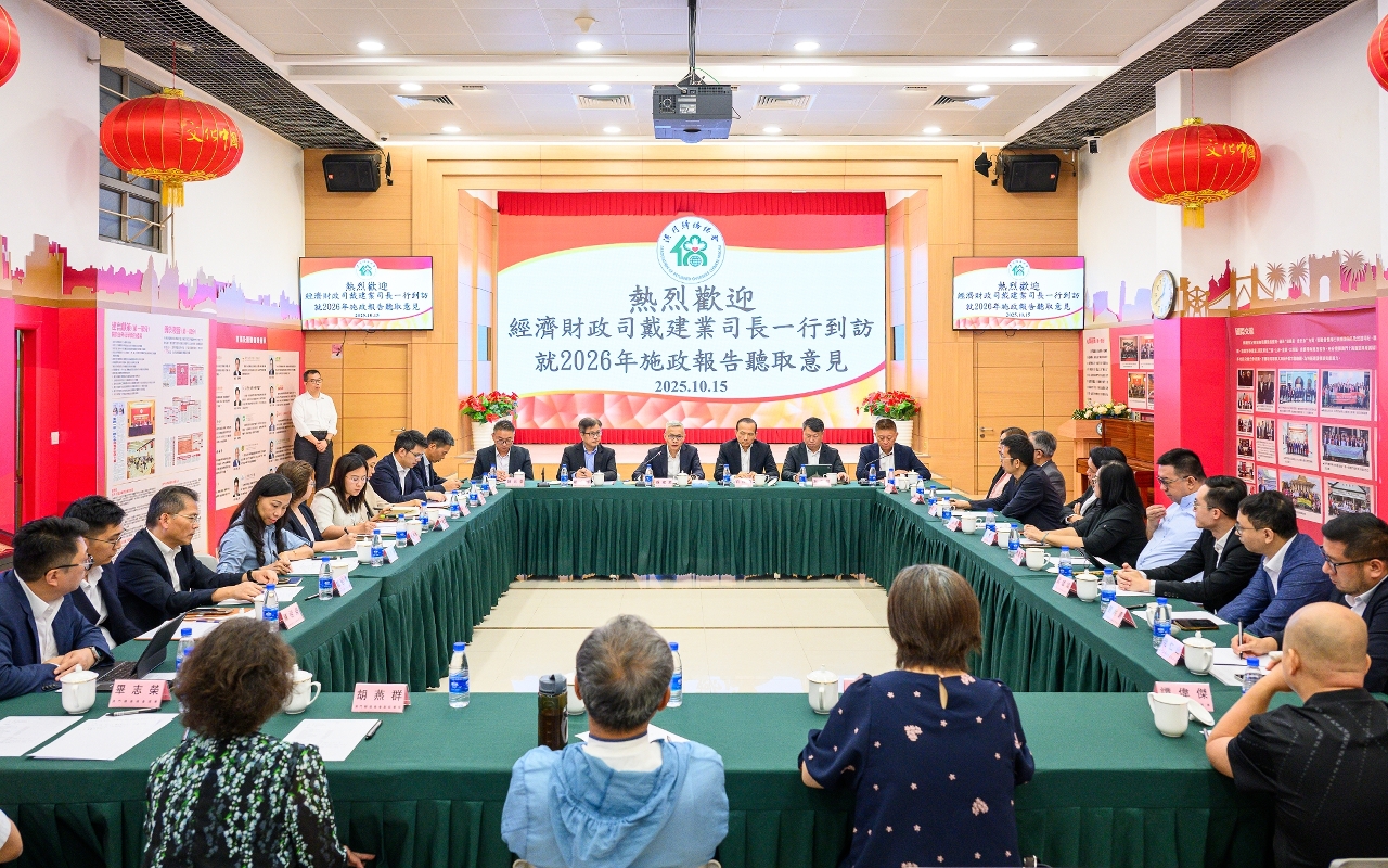 經濟財政司司長戴建業近日率領轄下各部門領導,先後拜訪澳門婦女聯合總會、澳門福建同鄉總會及民眾建澳聯盟、澳門街坊會聯合總會、澳門中華總商會、澳門廠商聯合會、澳門青年聯合會、澳門工會聯合總會、澳門歸僑總會,就制定經濟財政範疇明年度施政方針聽取意見和建議。戴建業感謝各社團長期以來對經財範疇施政工作的支持,強調將認真研究及參考座談會上各代表提出的寶貴意見,進一步完善施政方針;同時期望各社團持續支持經財團隊工作,共同落實行政長官施政理念,推動澳門經濟適度多元發展。