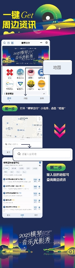 活動現場車位緊張,倡導優先選擇綠色出行。活動期間主辦方在橫琴口岸(迎客平台南2門)、橫琴華發商都、北山(華發商都)公交站設置免費接駁巴士,助你輕鬆到達。自駕車的觀眾建議可將車輛停放至橫琴華發商都,再換乘免費接駁巴士前往活動現場。乘坐的士和網約車的觀眾,可將目的地設置為“匯通六路公交站”“港澳·金融中心”,同時活動方還準備了活動專屬打車福利券,掃描專屬二維碼領取滴滴出行往返0門檻7折券。觀眾也可乘坐公交、橫琴動態公交前往活動現場,可關注“珠海公交巴士”微信公眾號、“橫琴出行”微信小程序查詢相關路線。