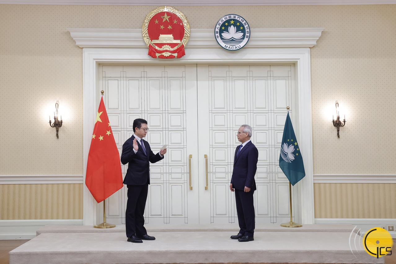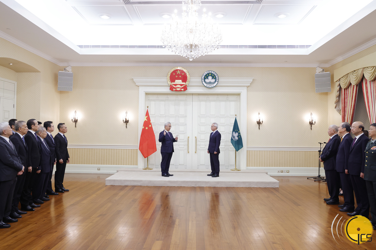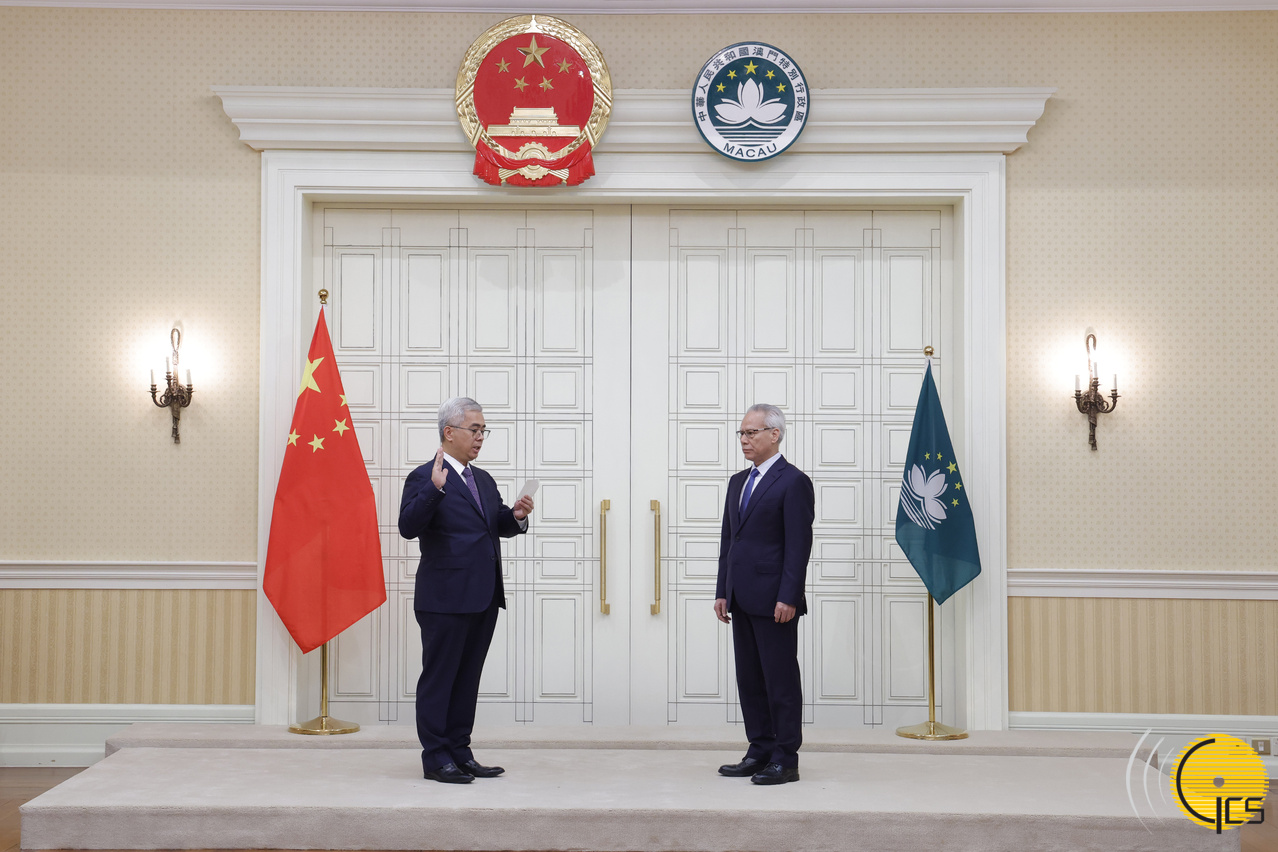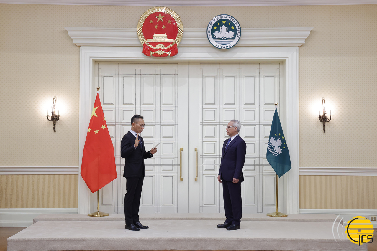 行政長官岑浩輝今(16)日上午在政府總部主持行政法務司司長黃少澤、保安司司長陳子勁、檢察院檢察長唐曉峰的宣誓就職儀式。